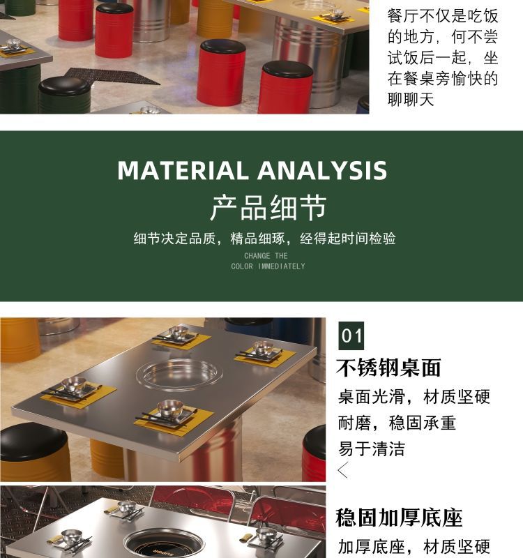 Sản phẩm nổi bật với các tính năng: Bàn ghế Lẩu phong cách công nghiệp Bàn ghế nướng bằng thép không gỉ Lẩu không khói Bếp từ tích hợp xiên thịt nướng thương mại Bàn ghế. Quý khách có nhu cầu mua Bếp nướng nhập khẩu vui lòng liên hệ với chúng tôi để được tư vấn hỗ trợ. Dịch vụ mua hàng Trung Quốc sẽ hỗ trợ quý khách mua hàng từ nhà cung cấp và giao tới tận tay quý khách hàng..