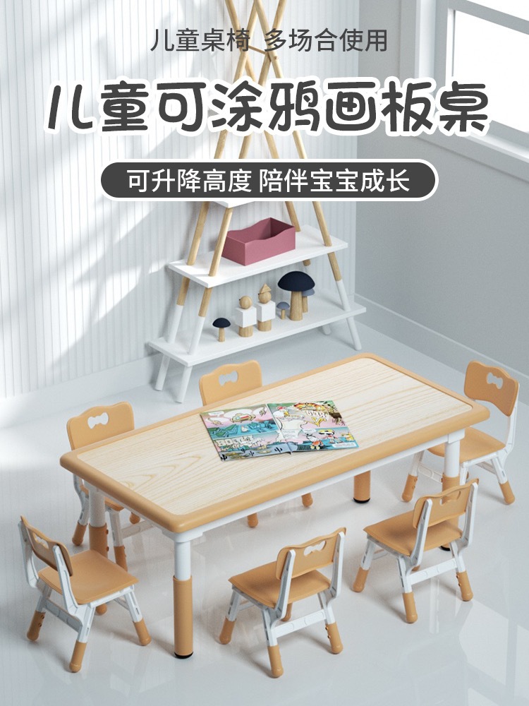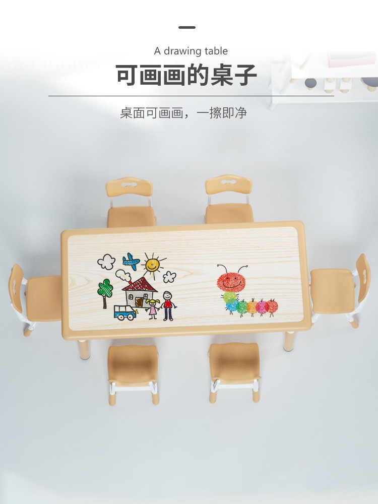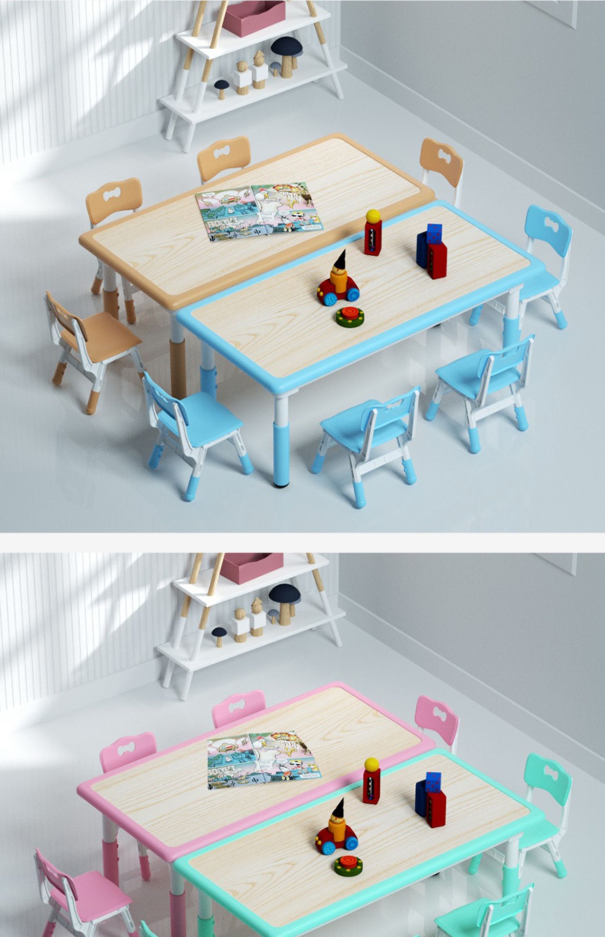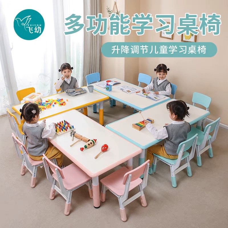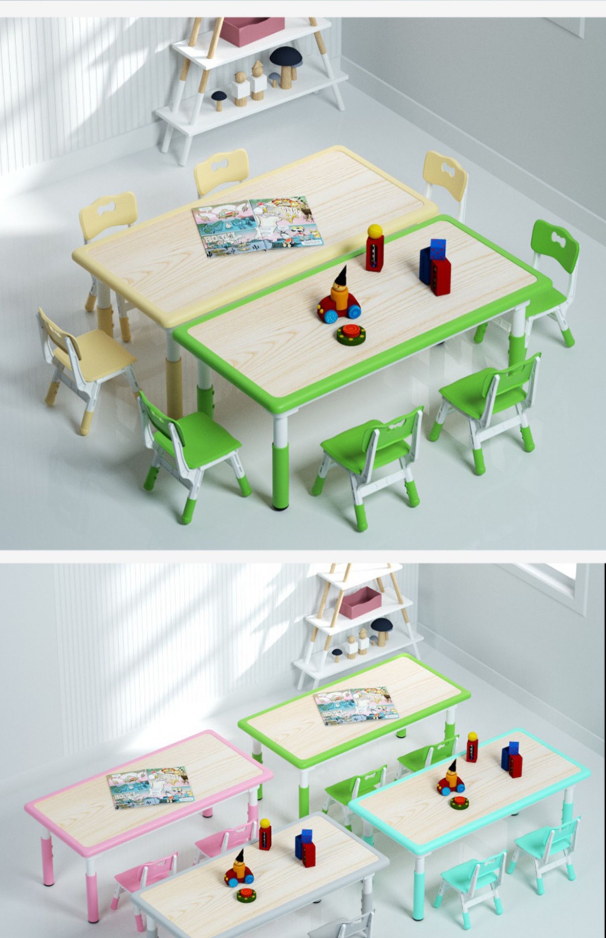Bàn ghế mẫu giáo bàn học trẻ em bàn học tại nhà cho bé bàn nhựa nâng hạ bàn chữ nhật nhỏ bộ bàn ghế game