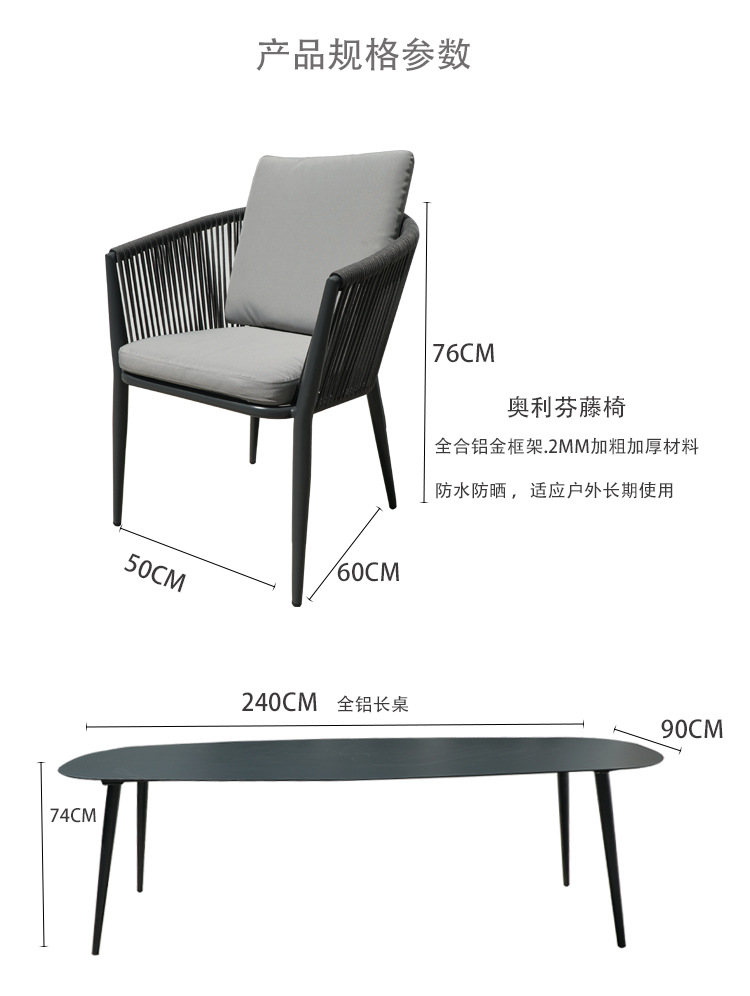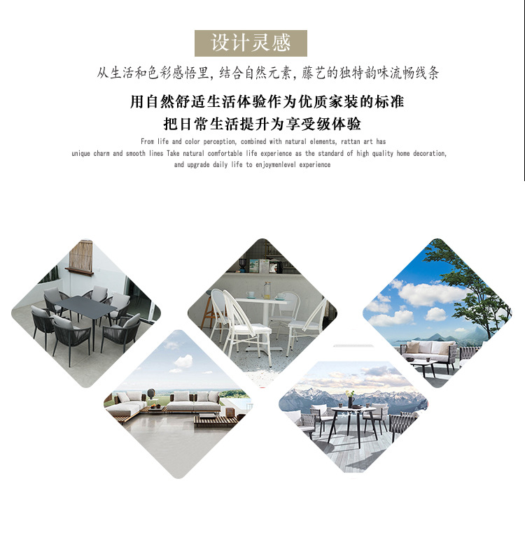 Bàn ghế ngoài trời Bắc Âu, bàn ghế mây sân trong, ban công biệt thự sân vườn ngoài trời, ghế mây giải trí, bộ ba bàn dài dài
