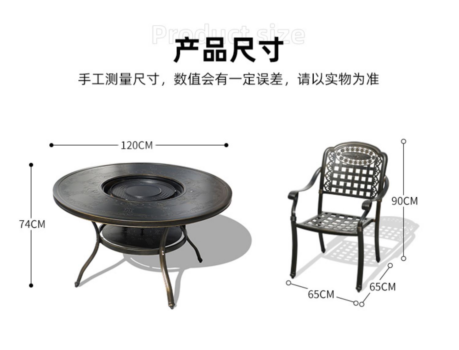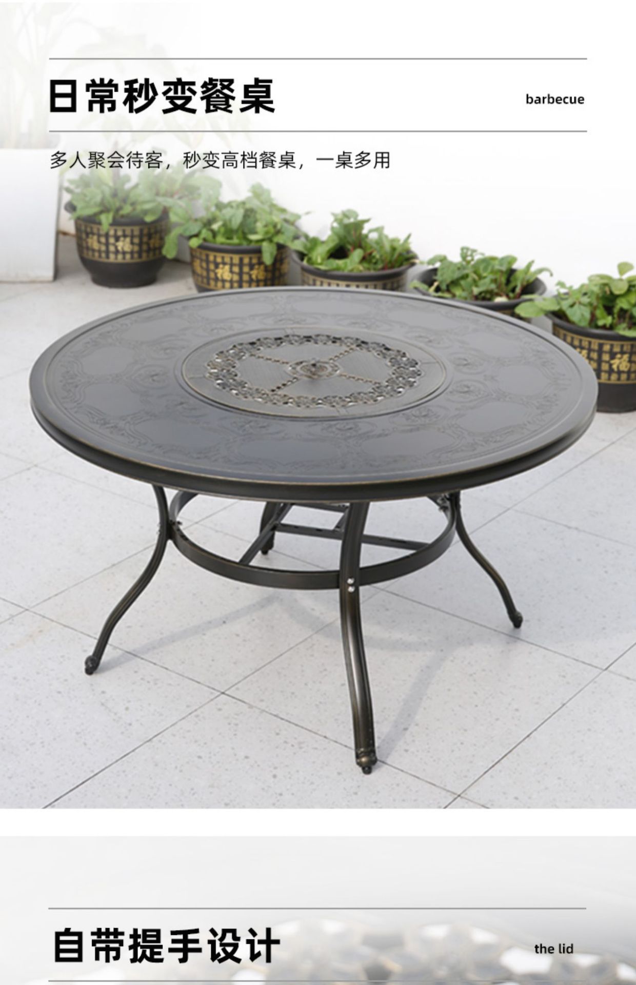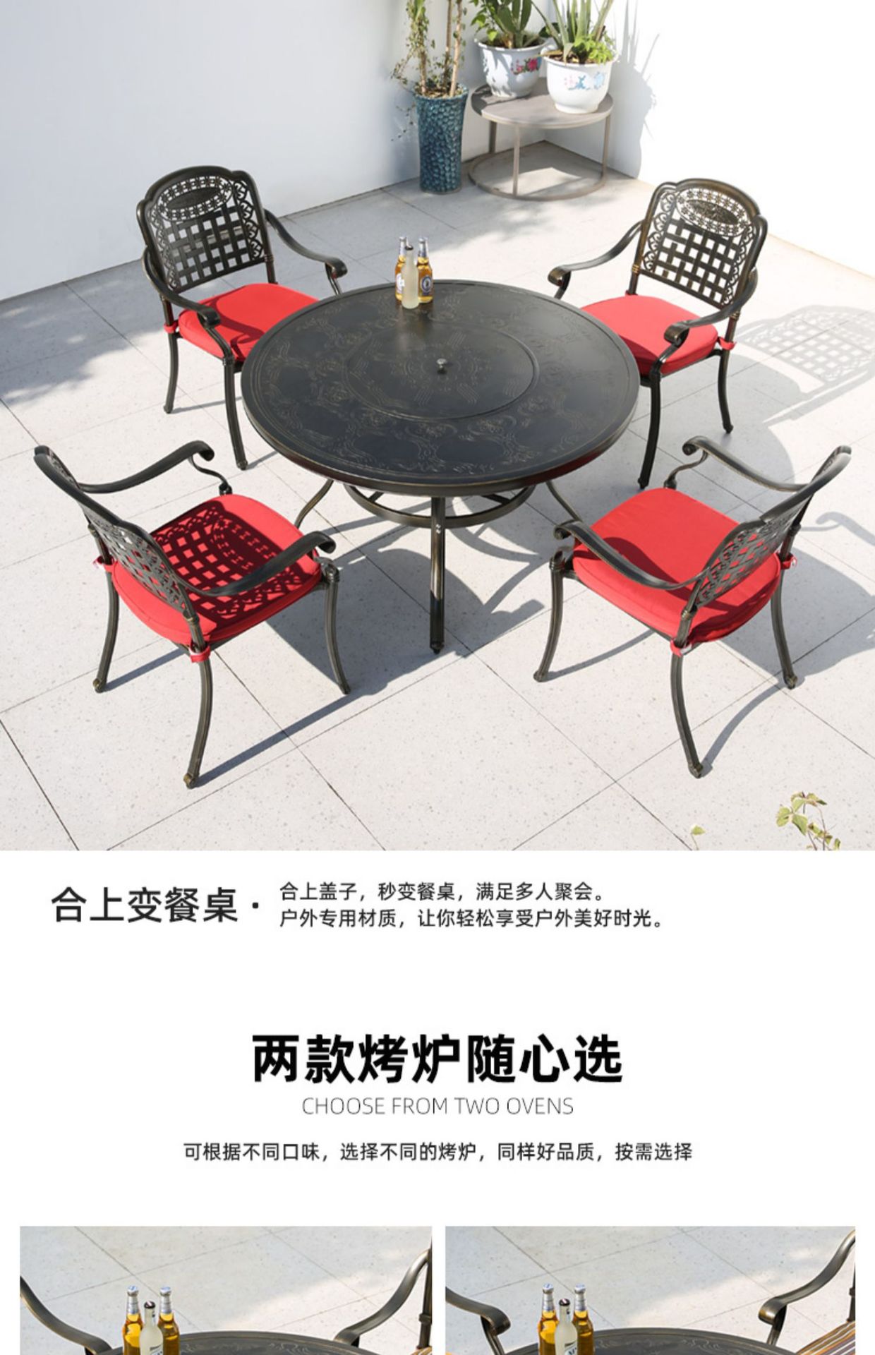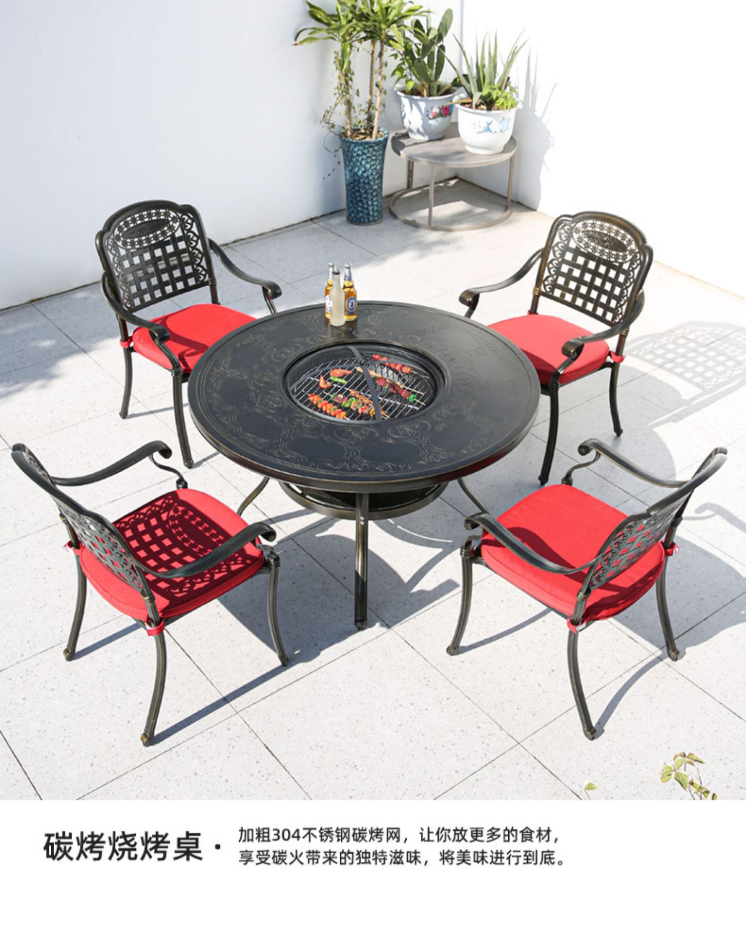 Bàn Ghế Ngoài Trời Bắc Âu Nội Thất Nhôm Đúc Sân Vườn Bàn Ăn Kết Hợp Kem Chống Nắng Chống Thấm Nước Bàn Tròn Bàn Ghế Nướng Ngoài Trời Mã số: JO–Bàn ghế nhôm đúc Dòng 050-Bàn BBQ-6 Thương hiệu: Jingou Outdoor Cho dù đó là người nộp thuế chung: Có Màu sắc: 4 ghế thông thường + 1 bàn nướng điện tốt lành 120CM / 4 ghế thông thường + 1 120CM Bàn nướng than cát tường / 4 ghế thường + 1 bàn nướng than cát tường 120CM Chất liệu: kim loại Mẫu mã: cát tường Thông số kỹ thuật: * Hàng đặc chủng xuất khẩu xuyên biên giới: Không Phong cách: Hiện đại, đơn giản Dịch vụ lắp đặt: không
