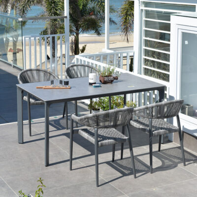 Bàn ghế ngoài trời ban công sân biệt thự sân vườn giải trí hiện đại đá phiến bàn dài quầy bar lưới đỏ shop ghế mây kết hợp