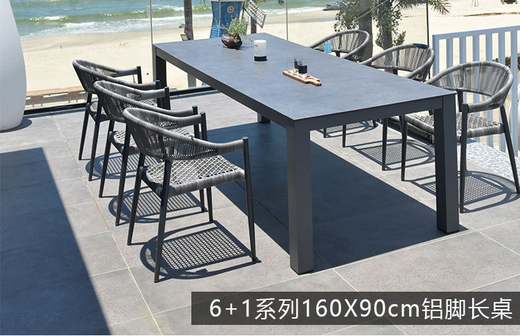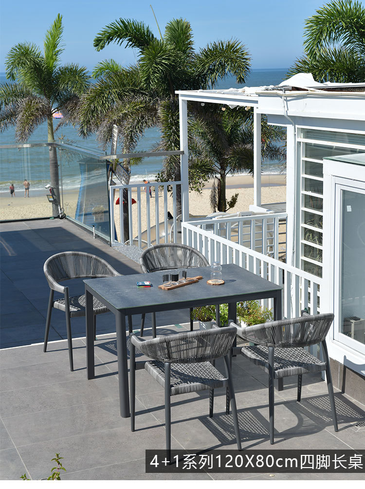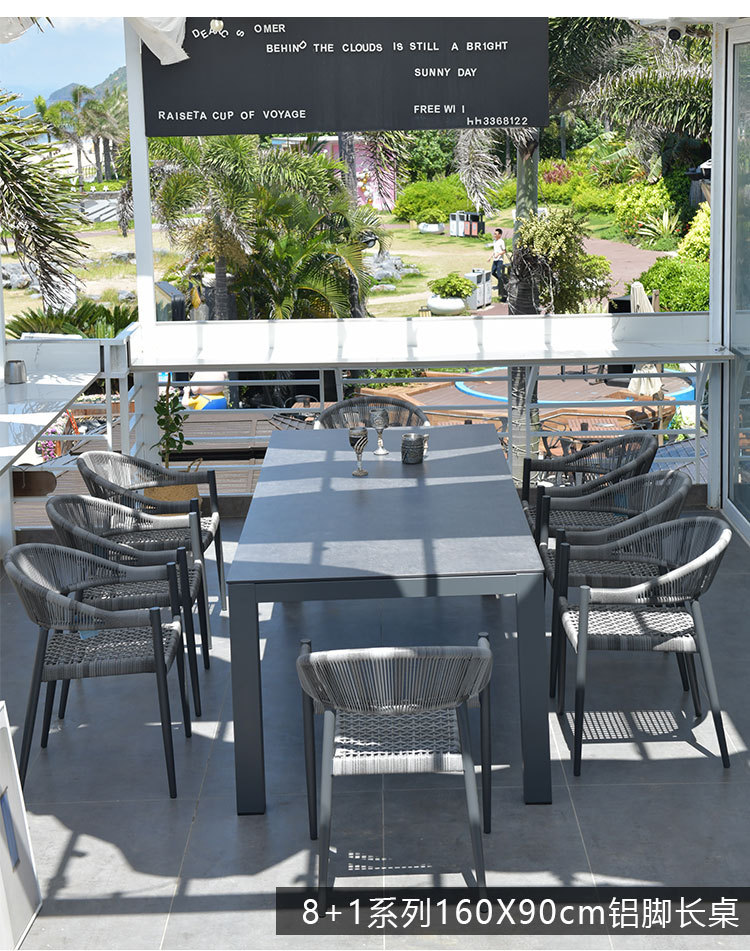 Bàn ghế ngoài trời ban công sân biệt thự sân vườn giải trí hiện đại đá phiến bàn dài quầy bar lưới đỏ shop ghế mây kết hợp