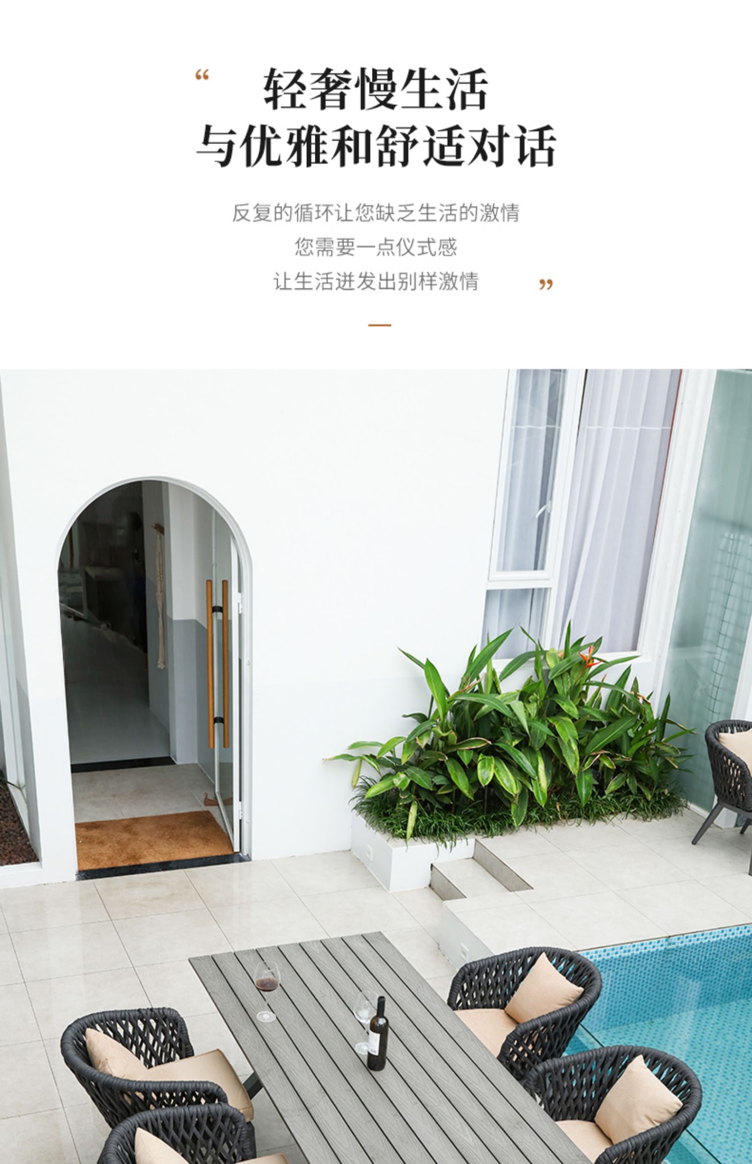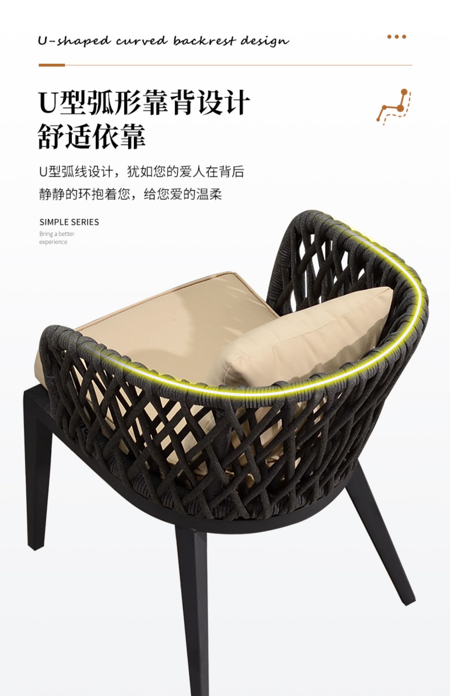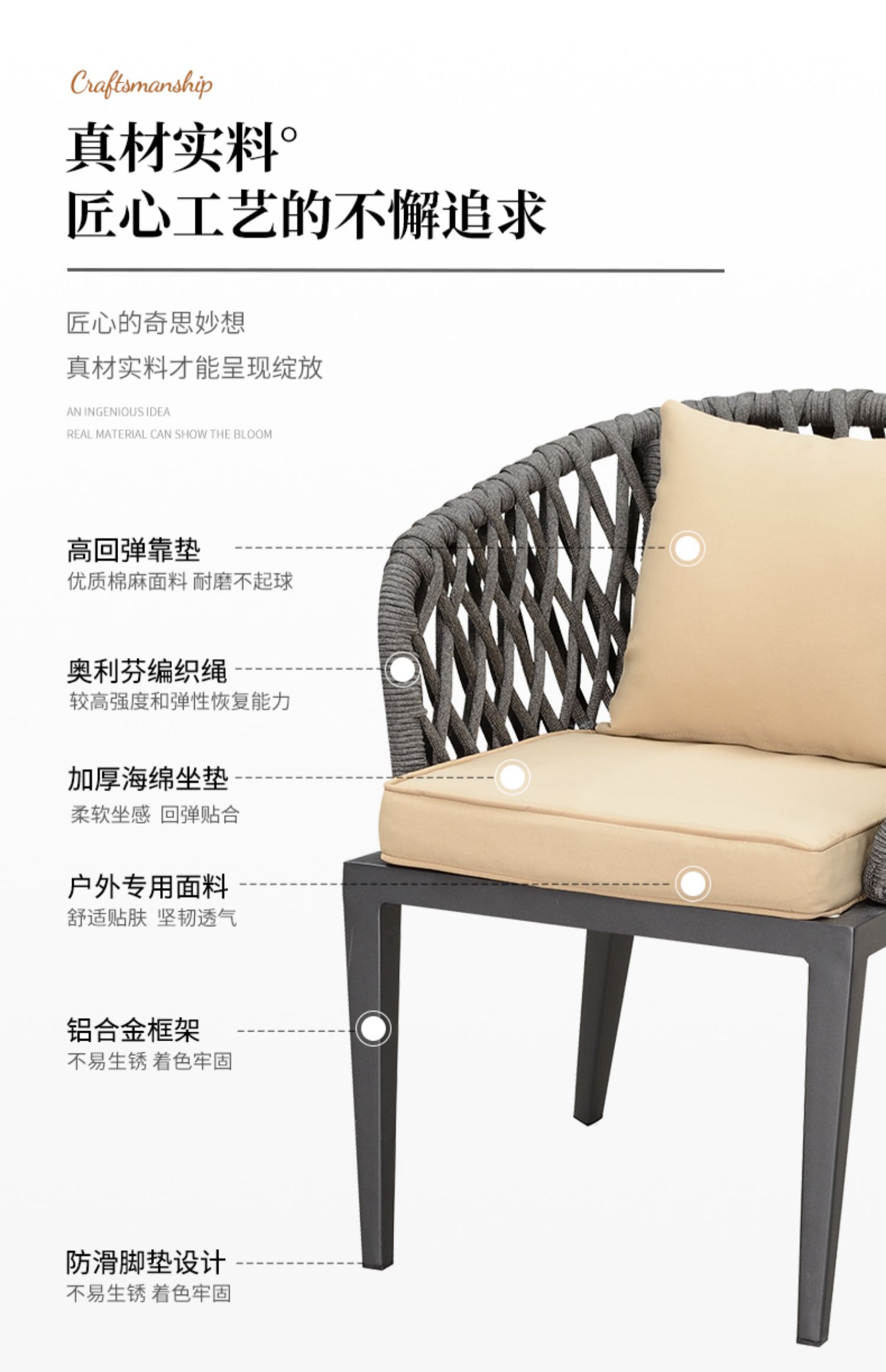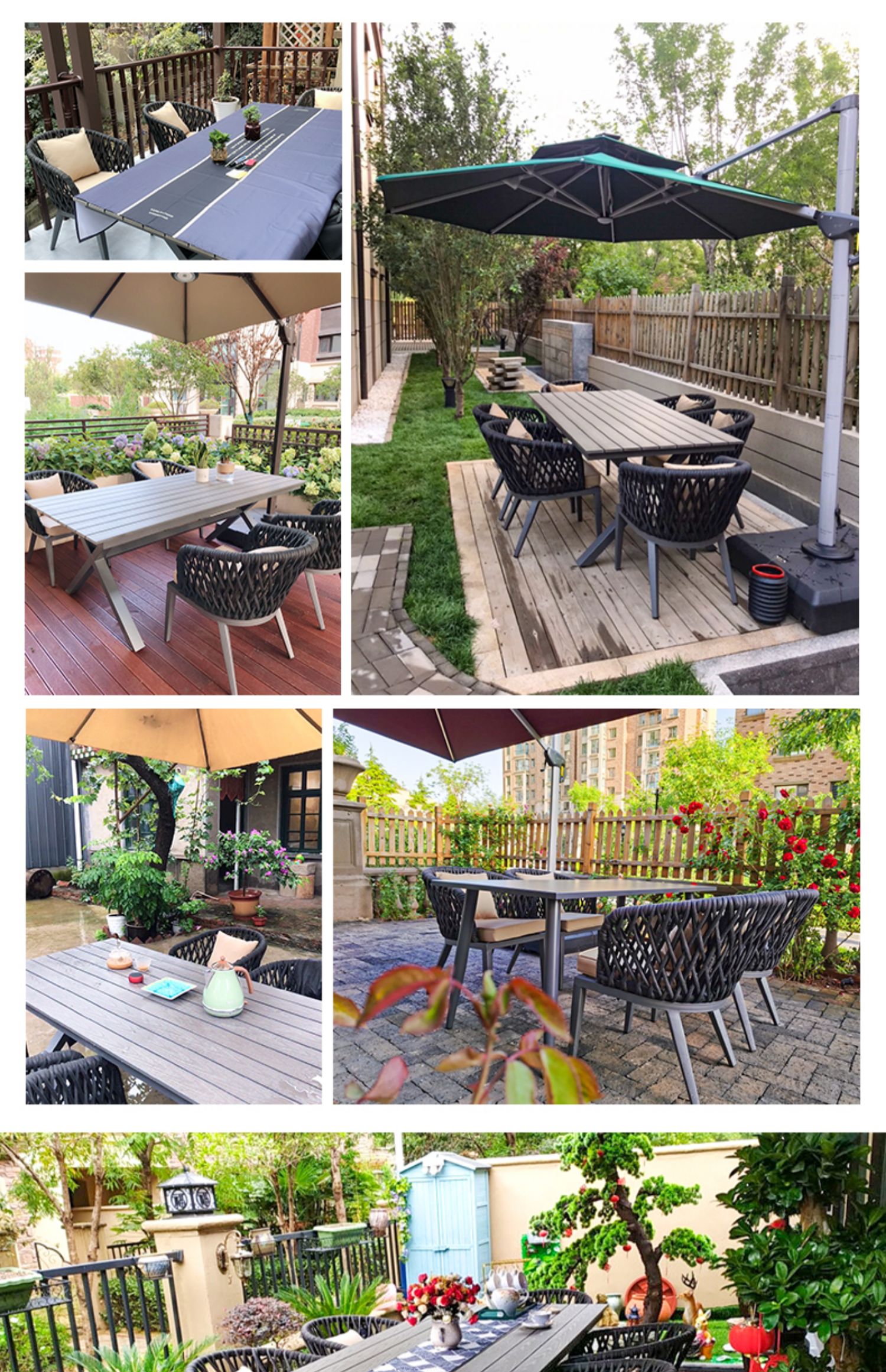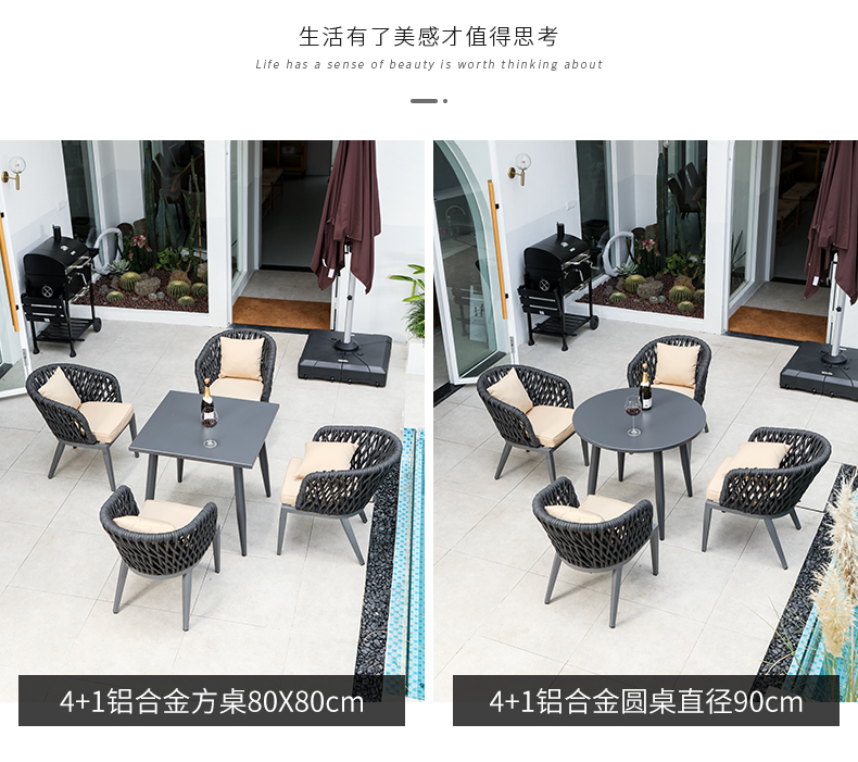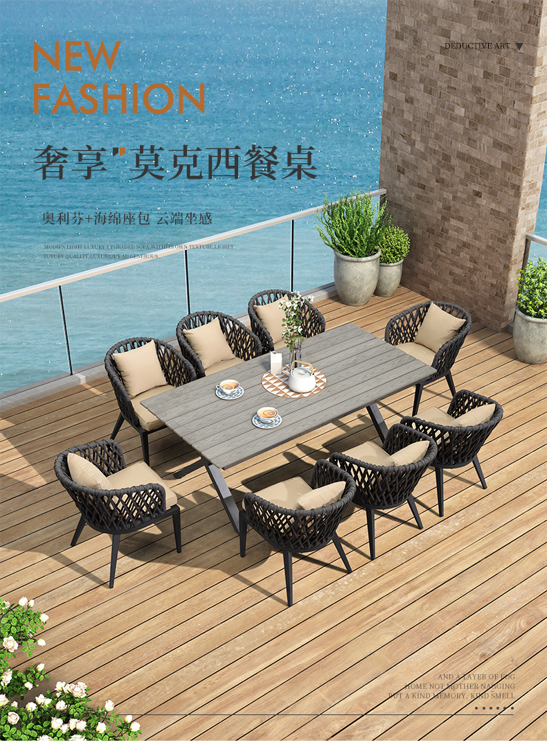 Sản phẩm nổi bật với các đặc điểm: Bàn ghế ngoài trời kết hợp biệt thự sân vườn Bắc Âu sân thượng bàn ăn dây ghế ăn thiết kế sân vườn ghế ngoài trời
