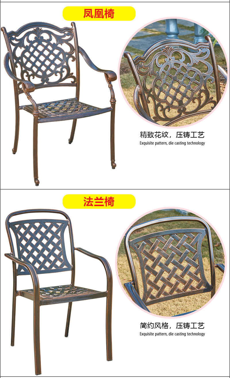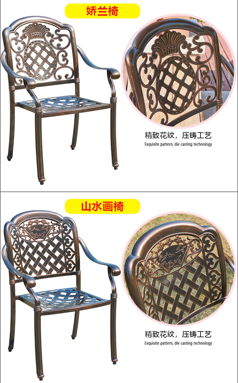 Bàn ghế ngoài trời Châu Âu, hộ gia đình nhôm đúc ngoài trời giải trí ngoài trời sân vườn sắt ban công ba mảnh