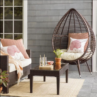 Bàn ghế ngoài trời chụp ảnh sofa sân mây giường xích đu ghế mây bộ ba món tựa lưng tổ chim kết hợp nội thất sân vườn