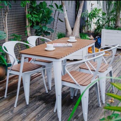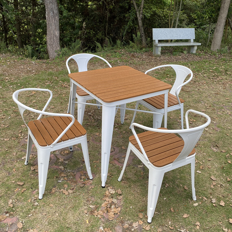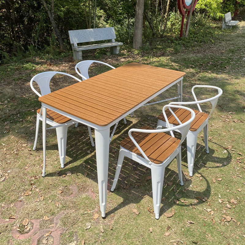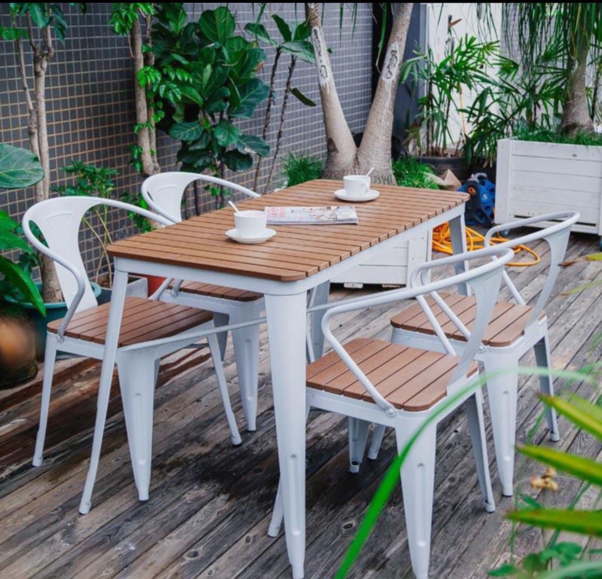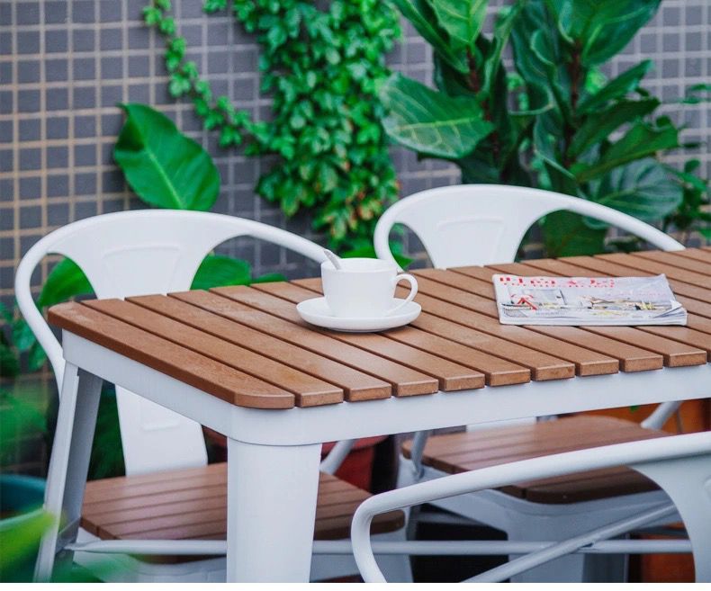 Bàn ghế ngoài trời đơn giản hiện đại sân ngoài trời ban công bàn ăn giải trí quán cà phê đồ nướng cửa hàng bàn ghế gỗ nhựa kết hợp