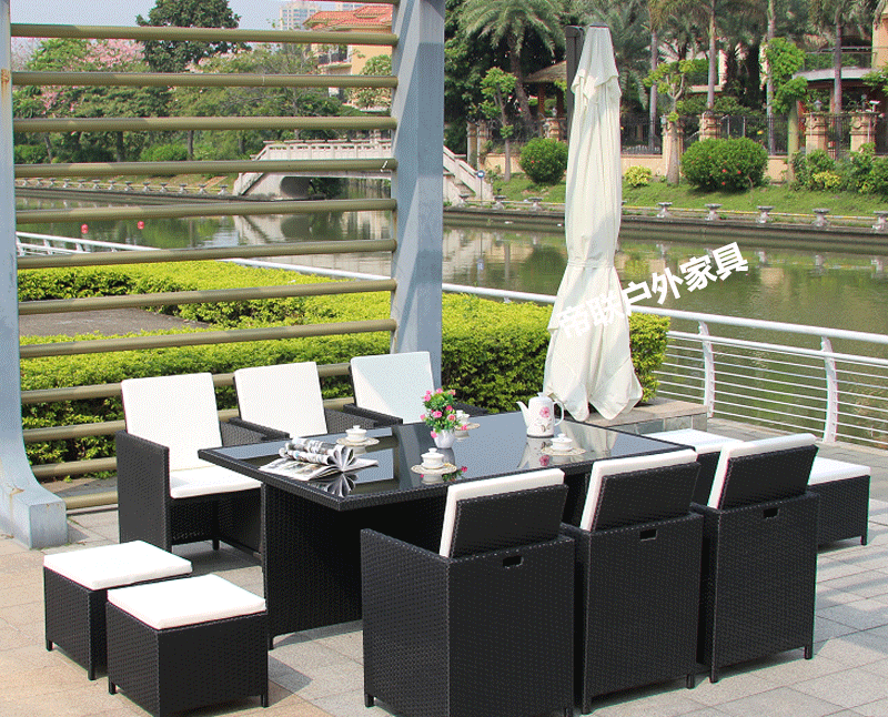 Một bàn sáu ghế lưng thấp và khung nhôm nâng cấp