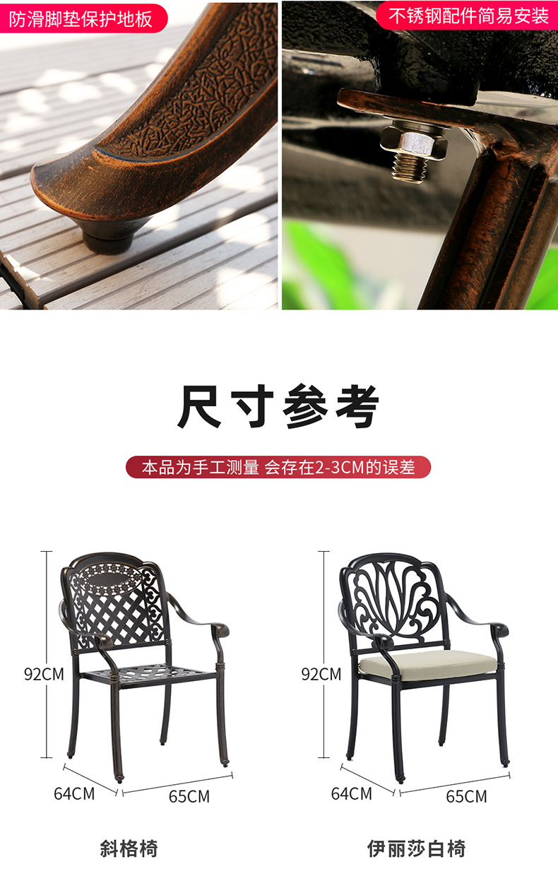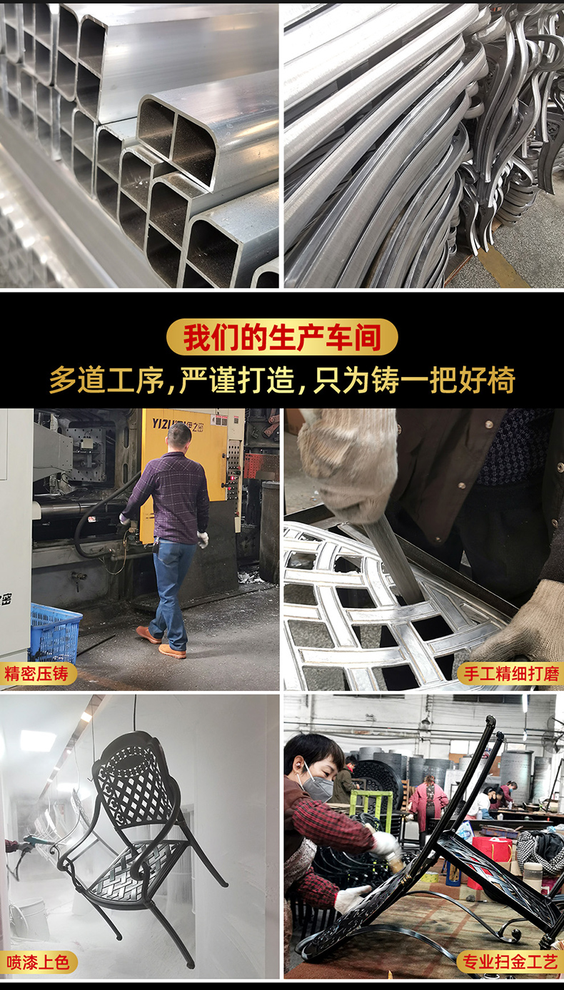 Bàn ghế ngoài trời kết hợp nhôm đúc ba hoặc năm mảnh sắt rèn sân vườn thư giãn ngoài trời chống nắng chống thấm biệt thự bàn ghế sân vườn được thiết kế để tạo điểm nhấn cho khu vực sân vườn, ban công hoặc không gian ngoài trời.