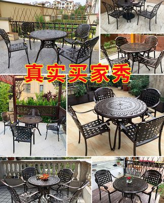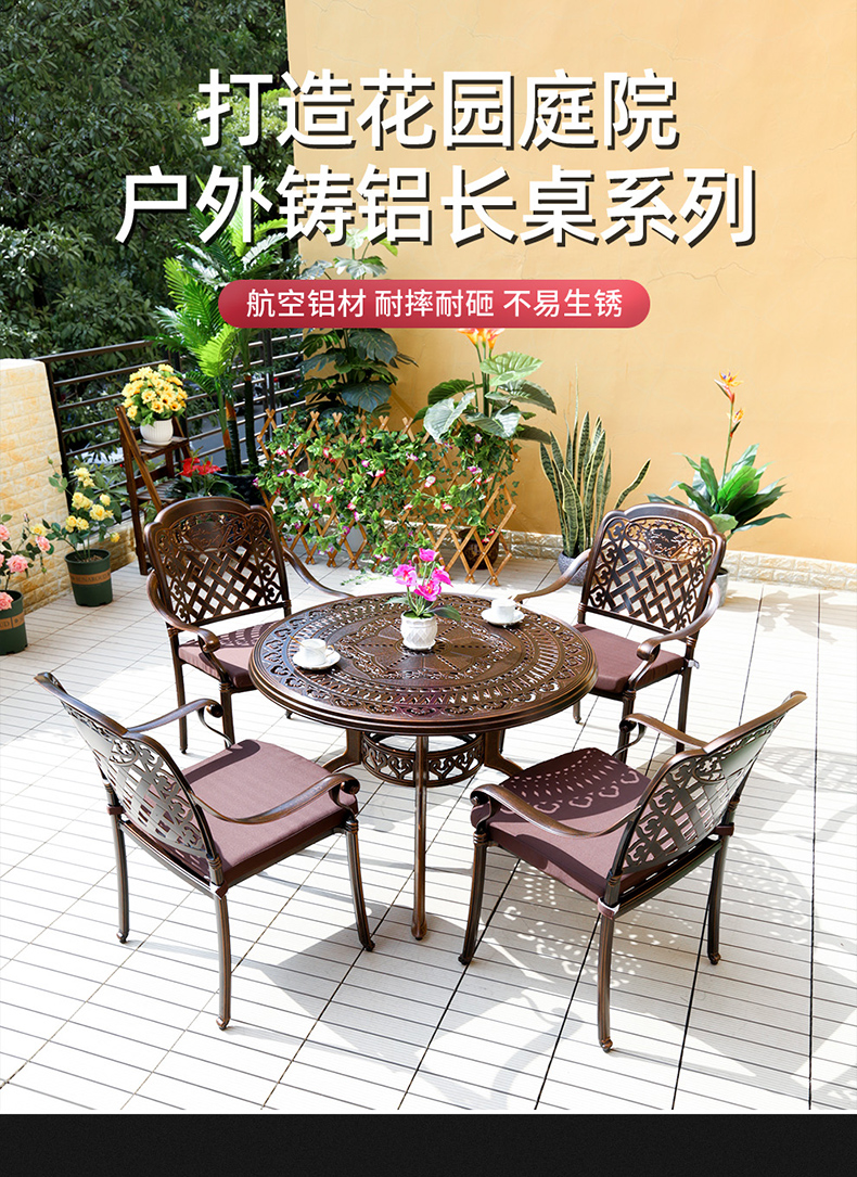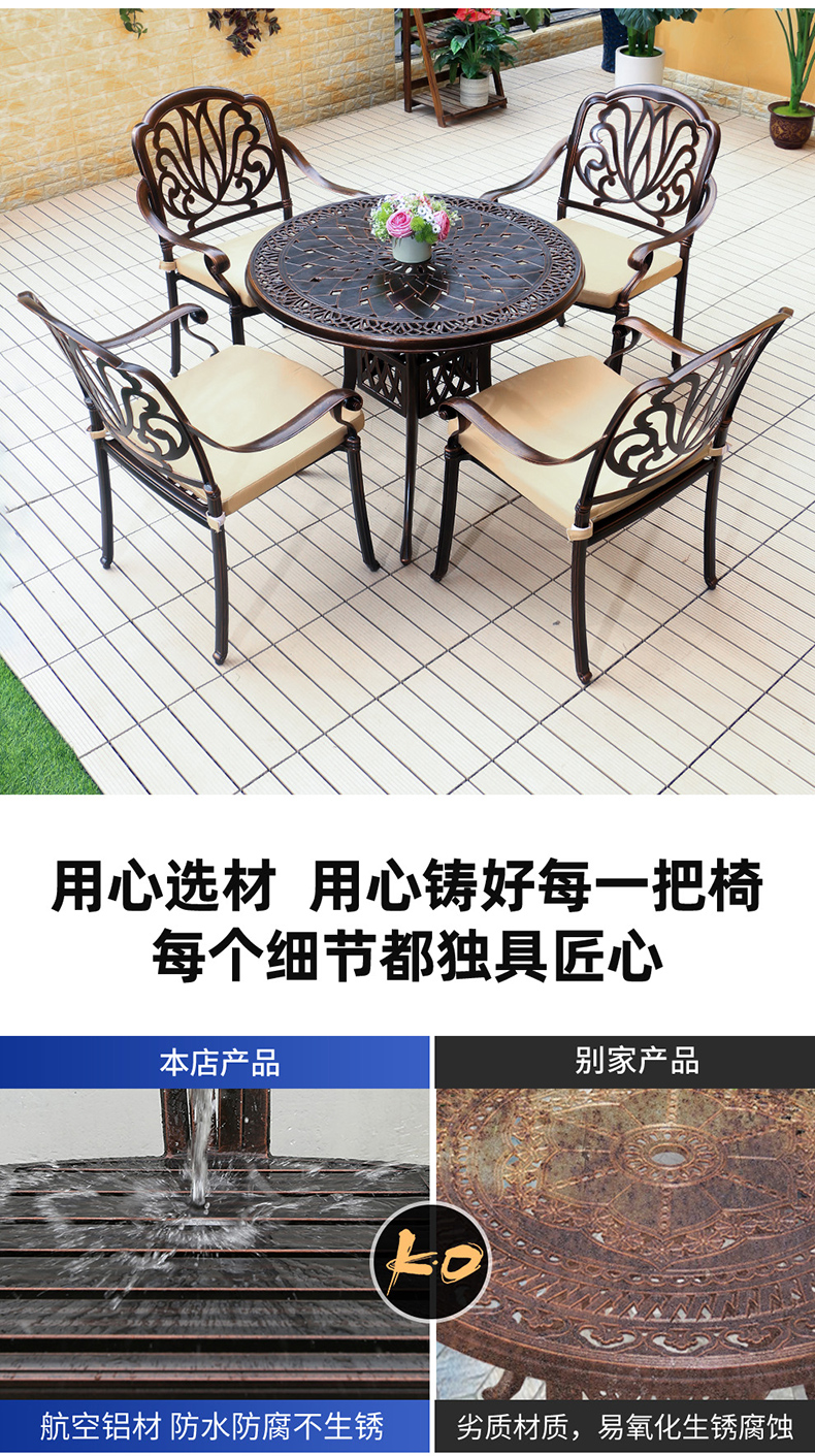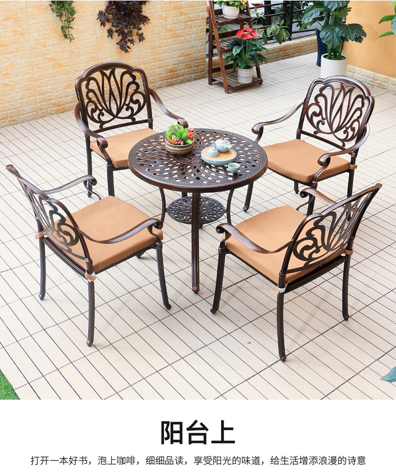 Bàn ghế ngoài trời kết hợp nhôm đúc ba hoặc năm mảnh sắt rèn sân vườn thư giãn ngoài trời chống nắng chống thấm biệt thự bàn ghế sân vườn