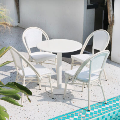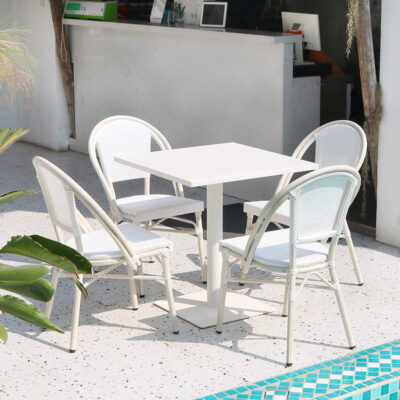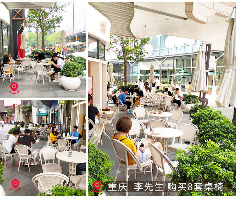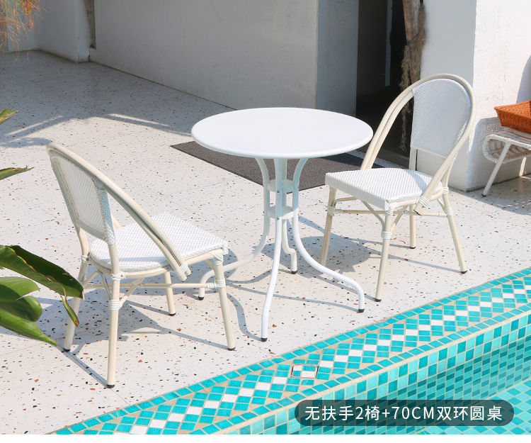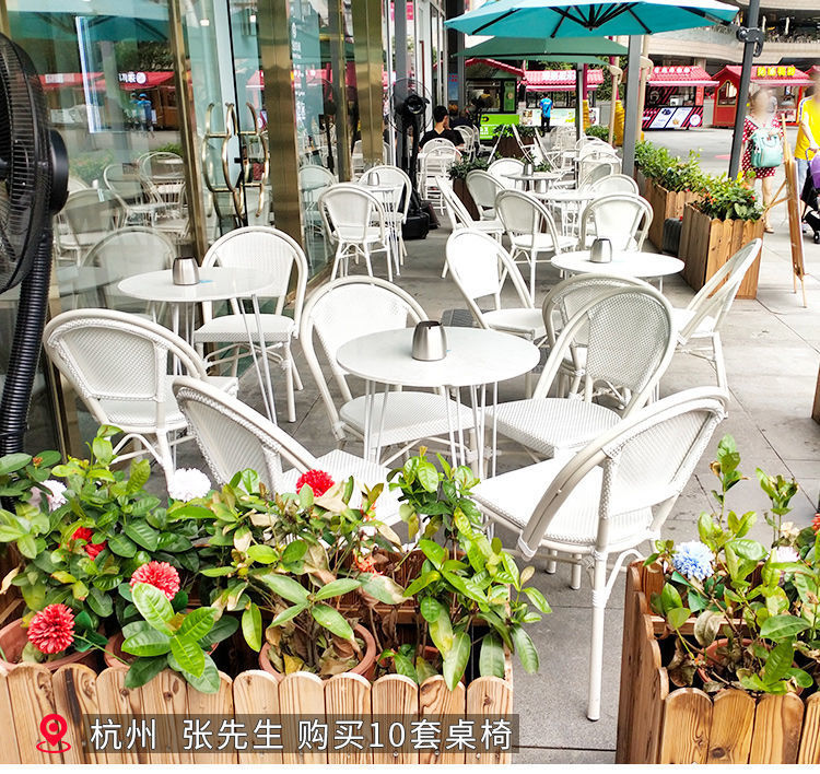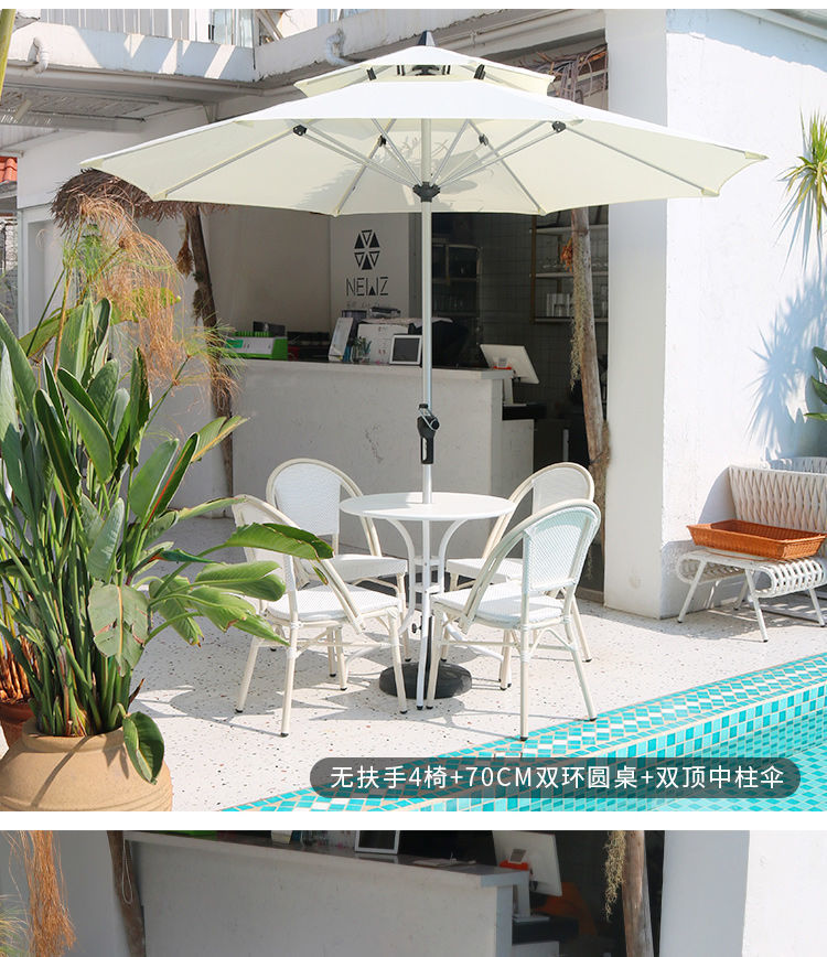Bàn ghế ngoài trời màu trắng sân ban công ngoài trời quán cà phê quán trà sữa Bàn ghế ngoài trời giản dị kết hợp ô
