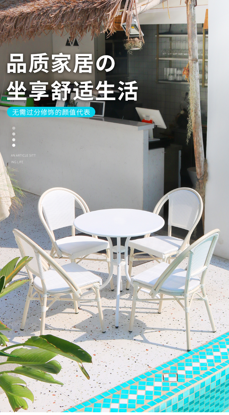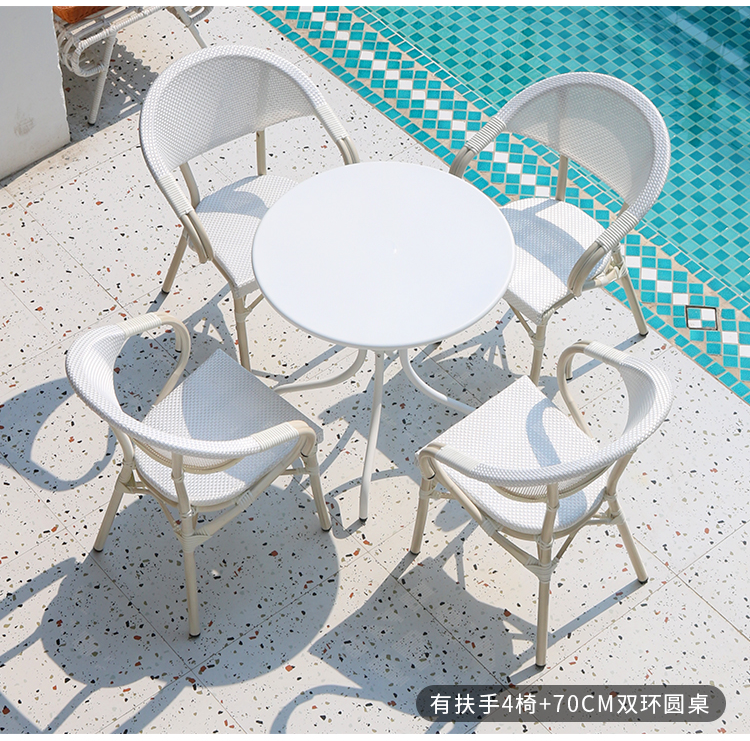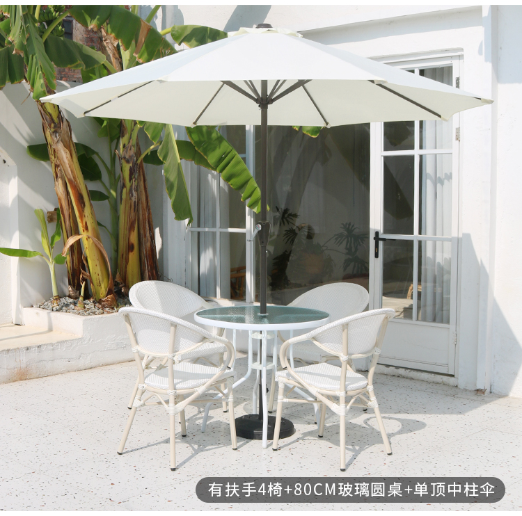 Bàn ghế ngoài trời màu trắng sân ban công ngoài trời quán cà phê quán trà sữa thư giãn ngoài trời bàn ghế ngoài trời kết hợp ô