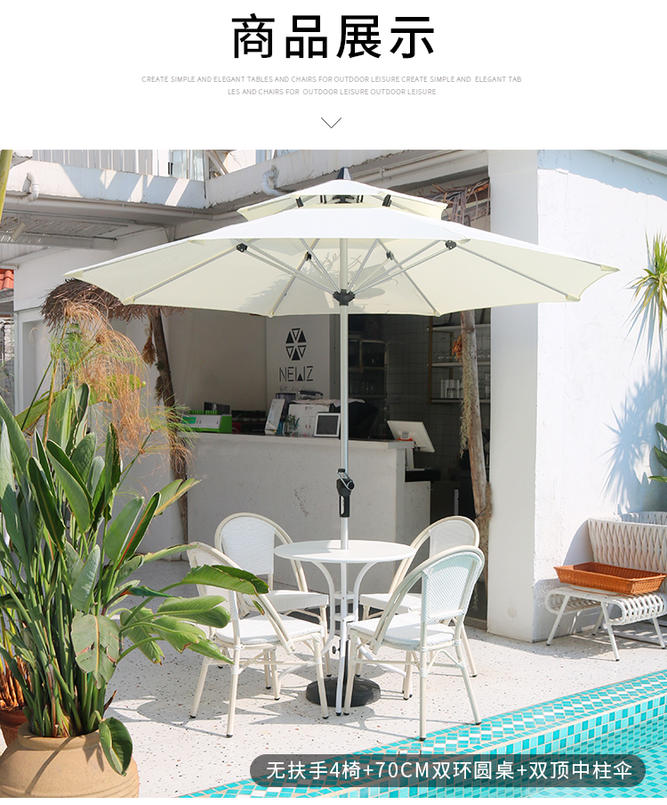 Bàn ghế ngoài trời màu trắng sân ban công ngoài trời quán cà phê quán trà sữa thư giãn ngoài trời bàn ghế ngoài trời kết hợp ô là lựa chọn lý tưởng cho không gian ngoài trời hiện đại. Liên hệ ngay để được hỗ trợ nhập khẩu và tư vấn chi tiết.