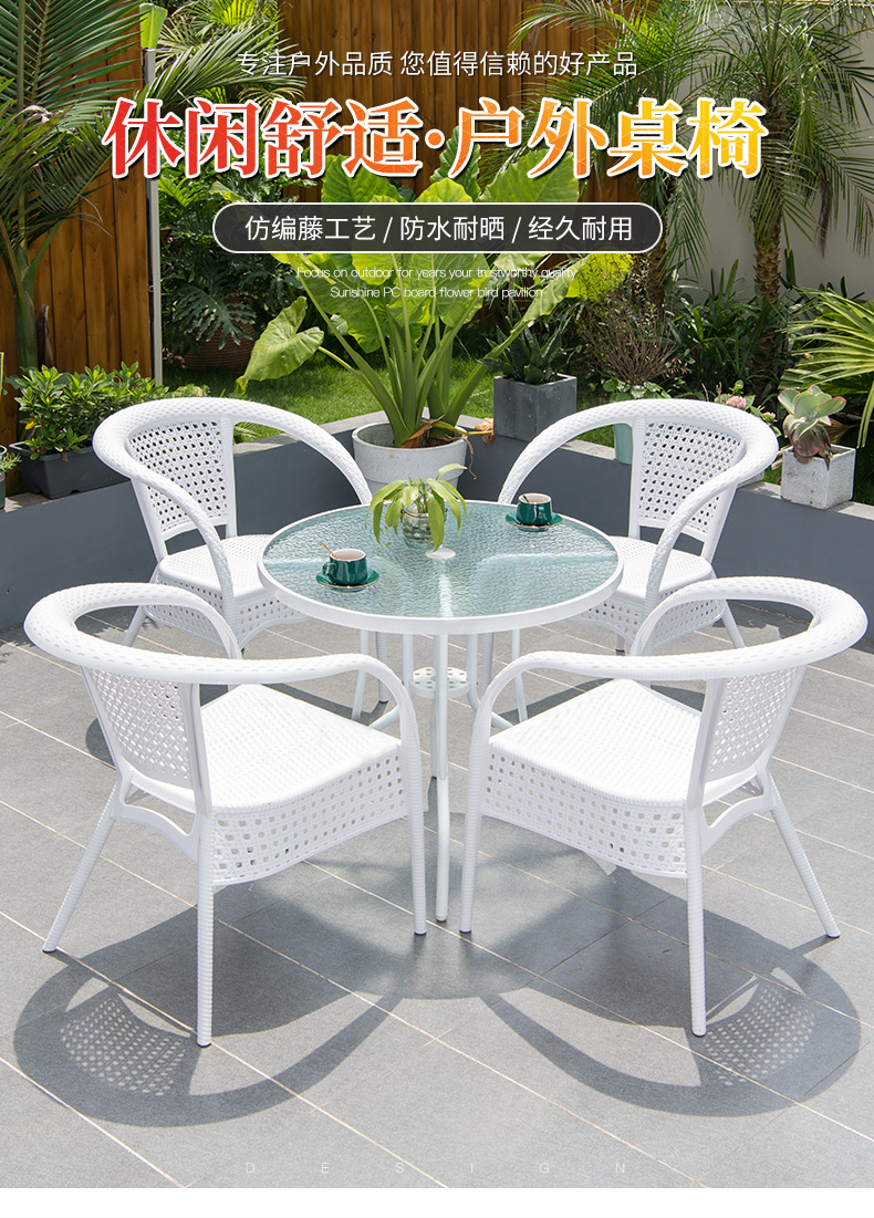Bàn ghế ngoài trời màu trắng sân vườn nhà ban công sân thượng bàn ghế thương mại trà sữa ghế giải trí ngoài trời được thiết kế để tạo điểm nhấn cho khu vực sân vườn, ban công hoặc không gian ngoài trời.