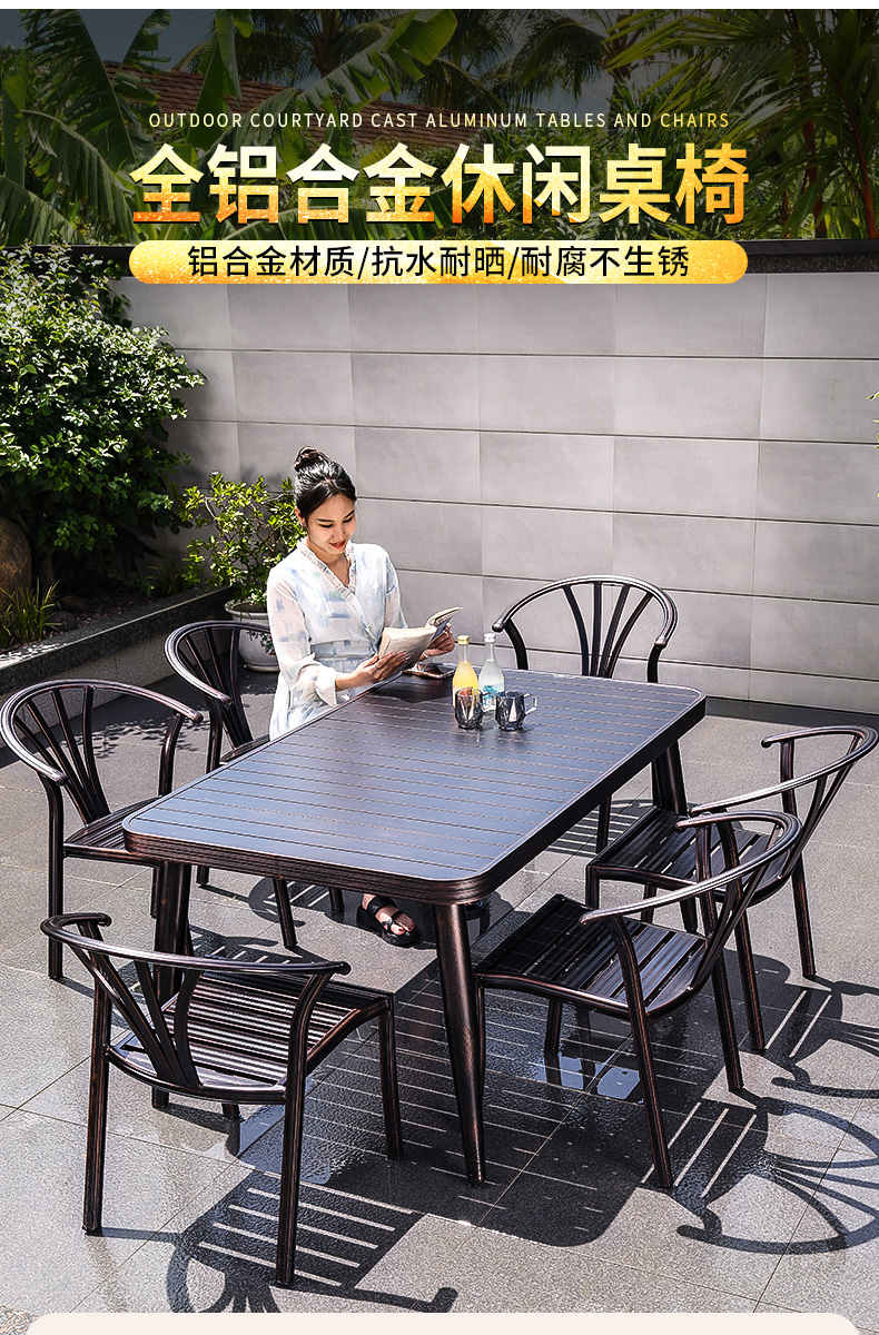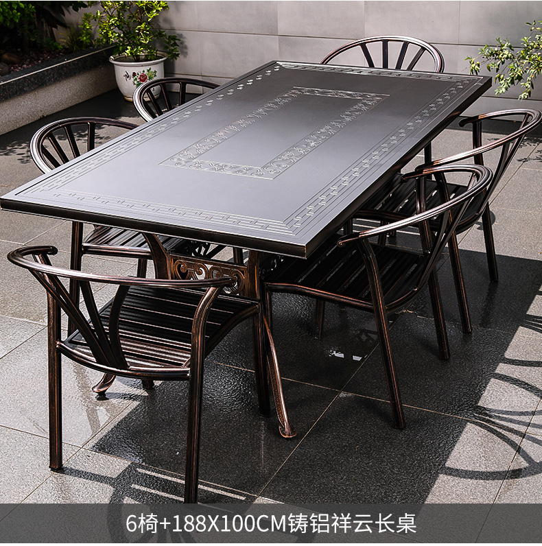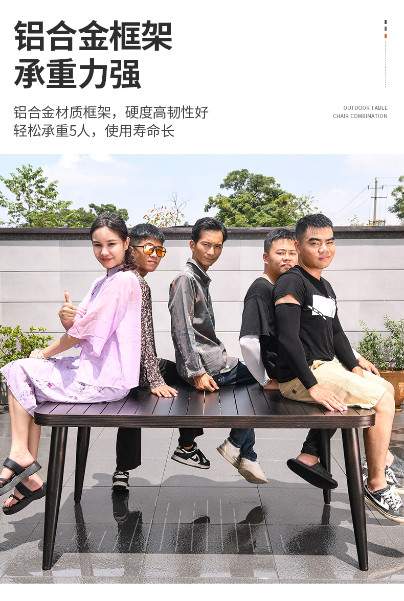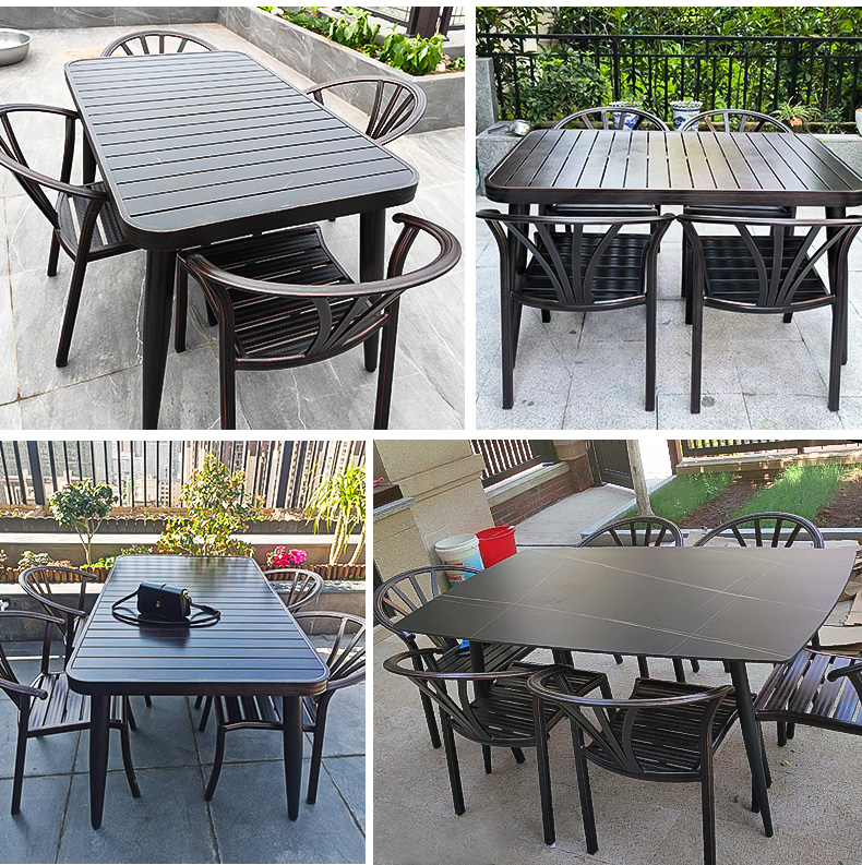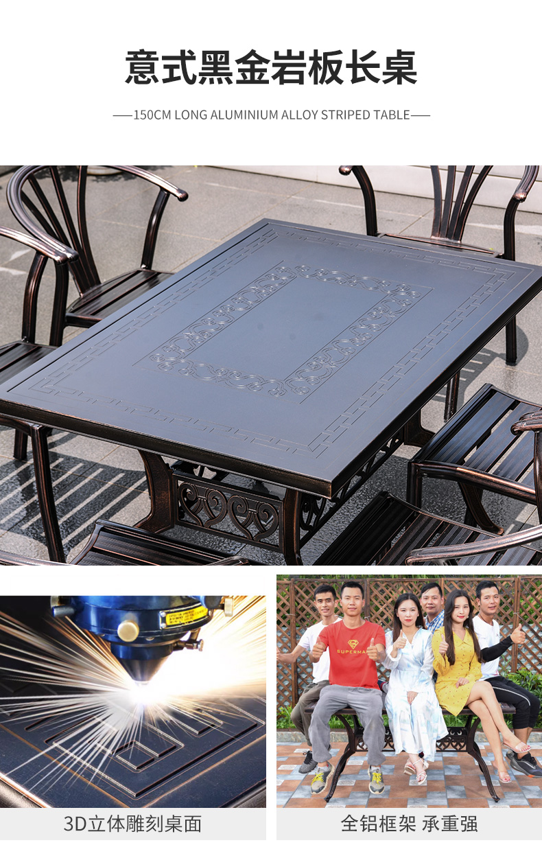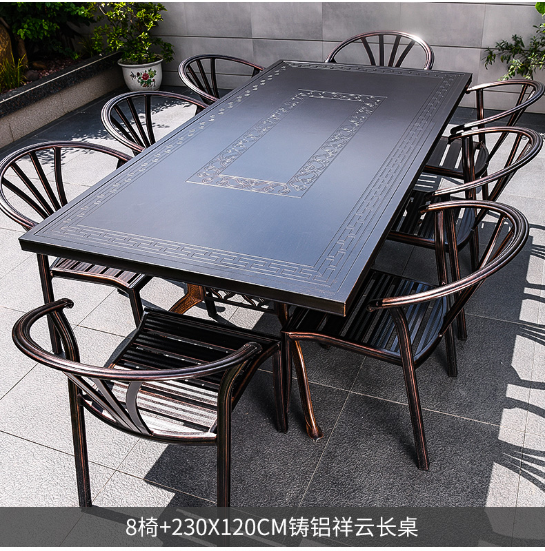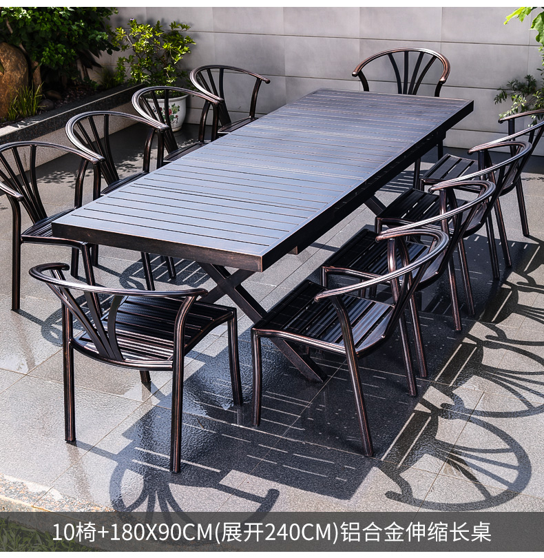 Bàn ghế ngoài trời Mojia kết hợp sân vườn giải trí ngoài trời chống mưa và chống nắng Bàn dài bằng hợp kim nhôm hoàn toàn với xích đu ngoài trời