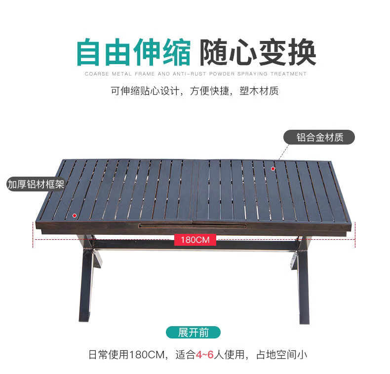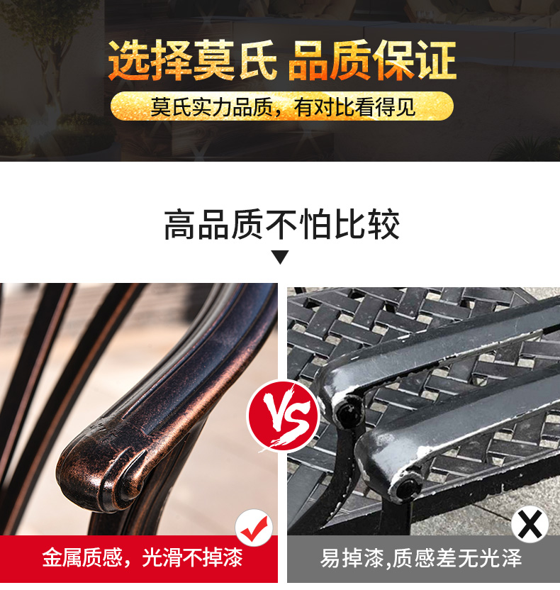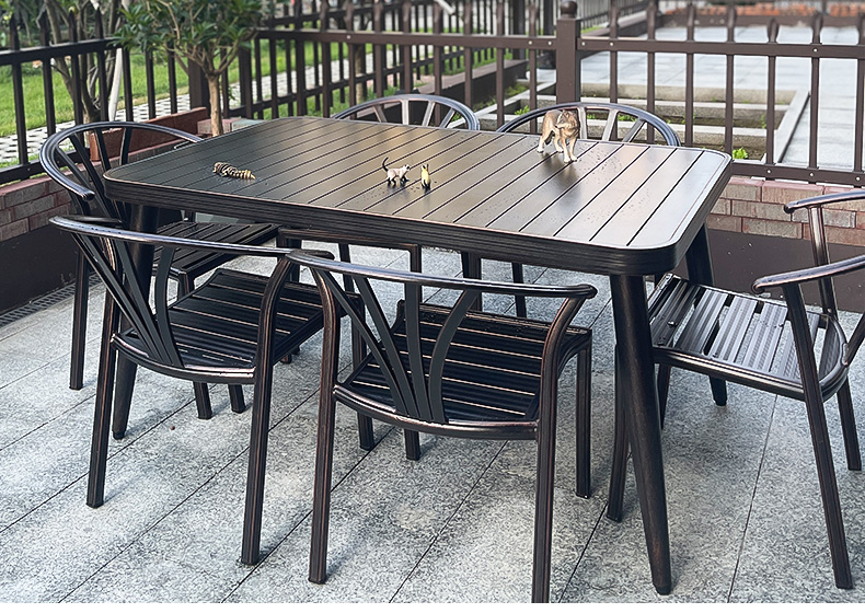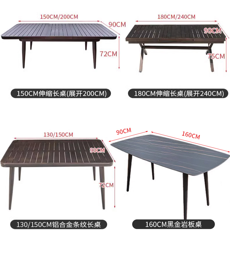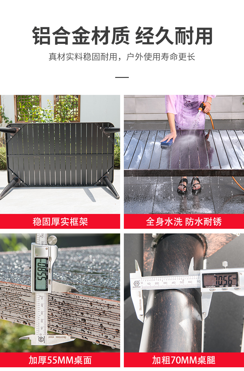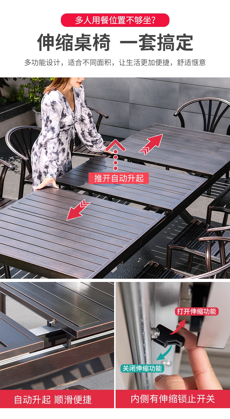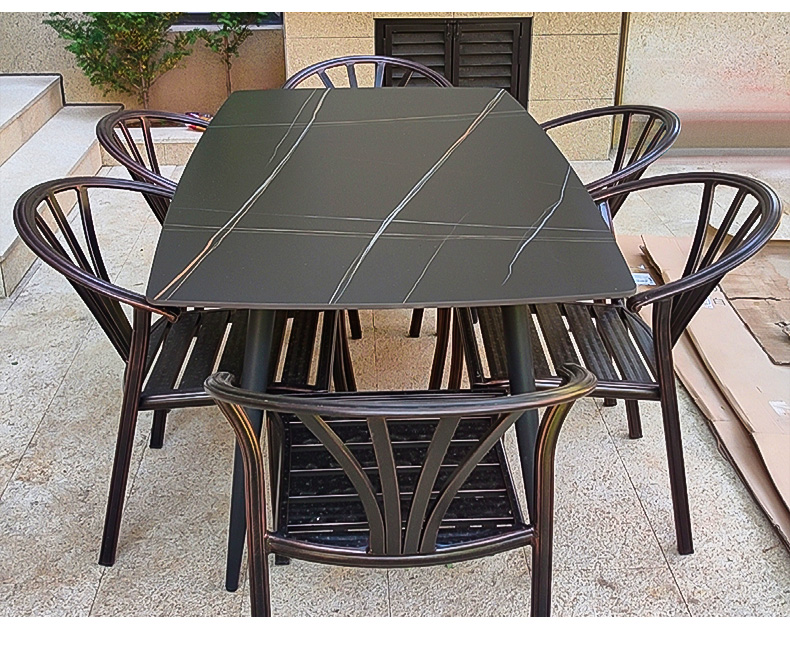 Bàn ghế ngoài trời Mojia kết hợp sân vườn giải trí ngoài trời chống mưa và chống nắng Bàn dài bằng hợp kim nhôm hoàn toàn với xích đu ngoài trời