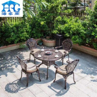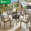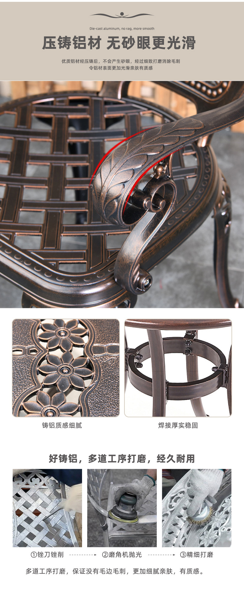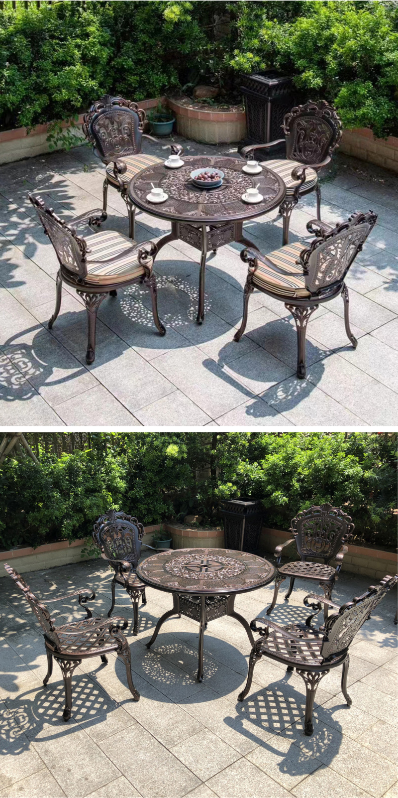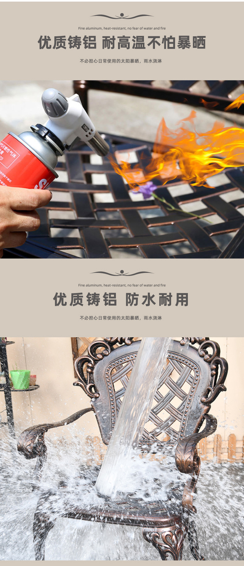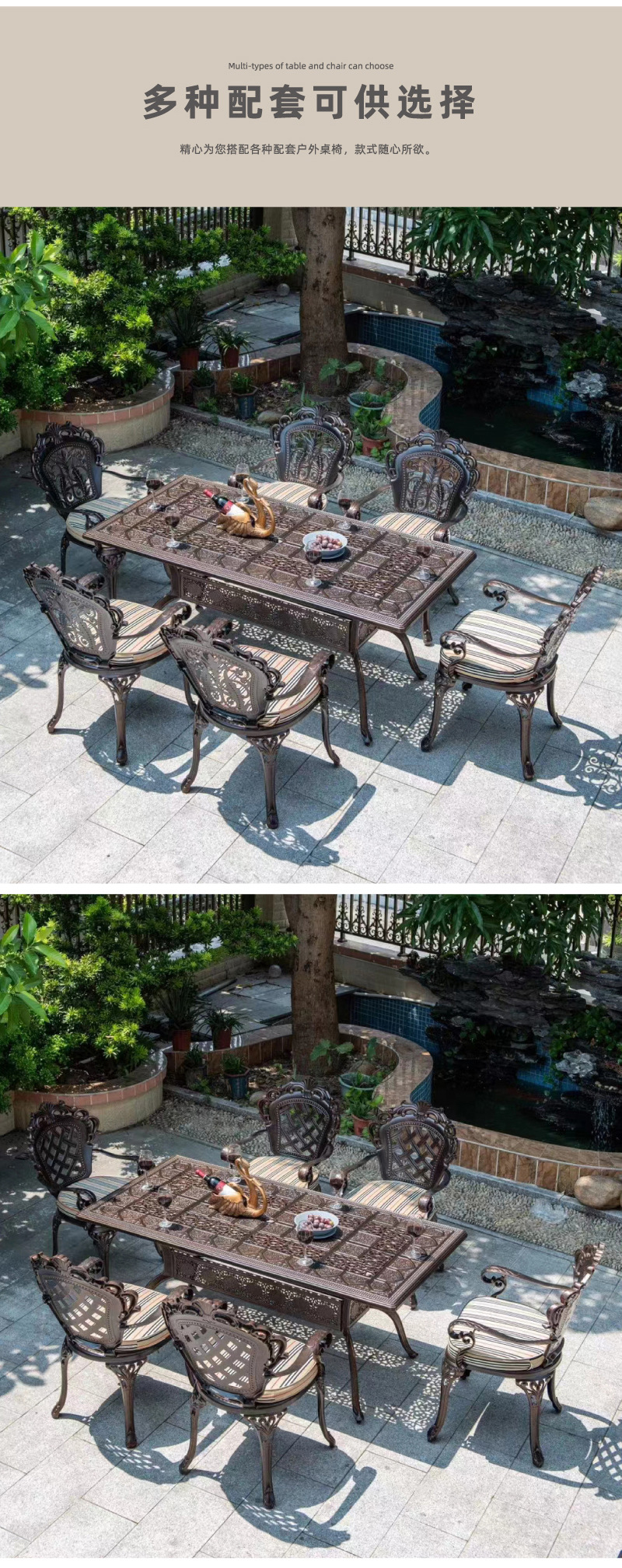 Bàn ghế ngoài trời nhôm đúc bàn dài sân vườn ngoài trời ban công ghế ăn thường kết hợp bàn ghế ngoài trời chống mưa Châu Âu được thiết kế để tạo điểm nhấn cho khu vực sân vườn, ban công hoặc không gian ngoài trời.