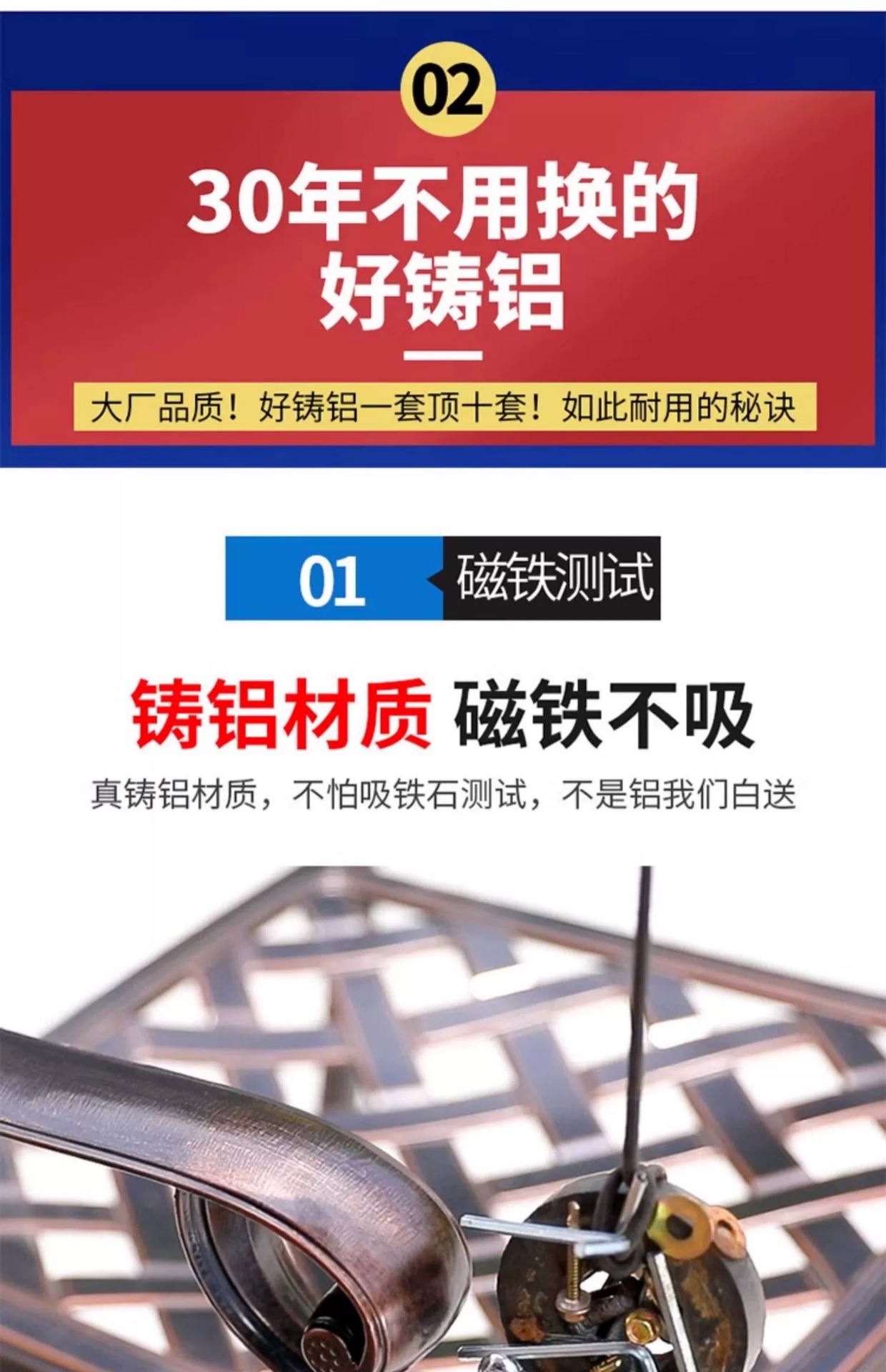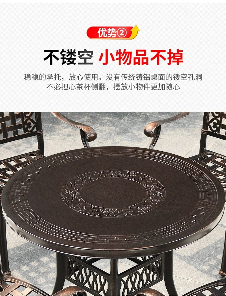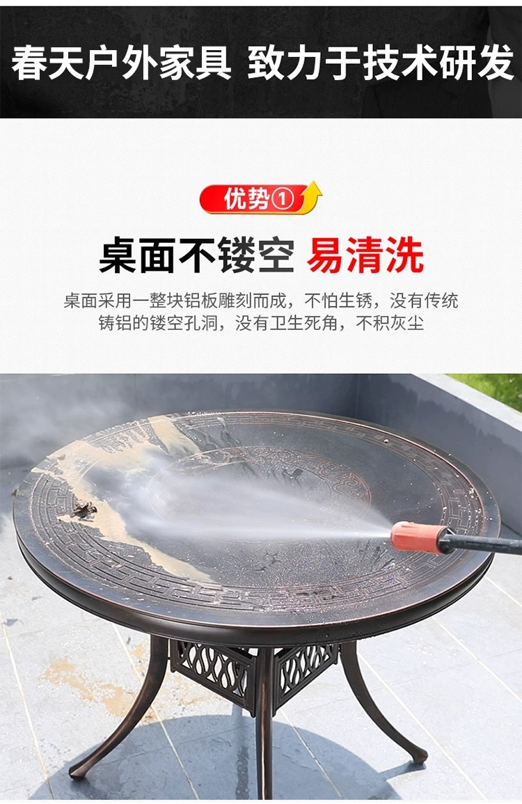 Bàn ghế ngoài trời nhôm đúc sân biệt thự ngoài trời sân vườn ngoài trời bàn sắt sân thượng sân ban công ghế giải trí kết hợp là lựa chọn lý tưởng cho không gian công cộng, sân vườn hoặc khu đô thị. Sản phẩm giúp nâng cao hình ảnh chuyên nghiệp và sạch đẹp cho môi trường sống.