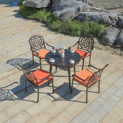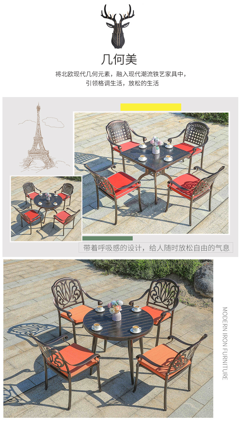 Bàn ghế ngoài trời nhôm đúc sân vườn ngoài trời giải trí biệt thự sân vườn sắt rèn sân thượng ban công kết hợp bàn trà được thiết kế để tạo điểm nhấn cho khu vực sân vườn, ban công hoặc không gian ngoài trời.