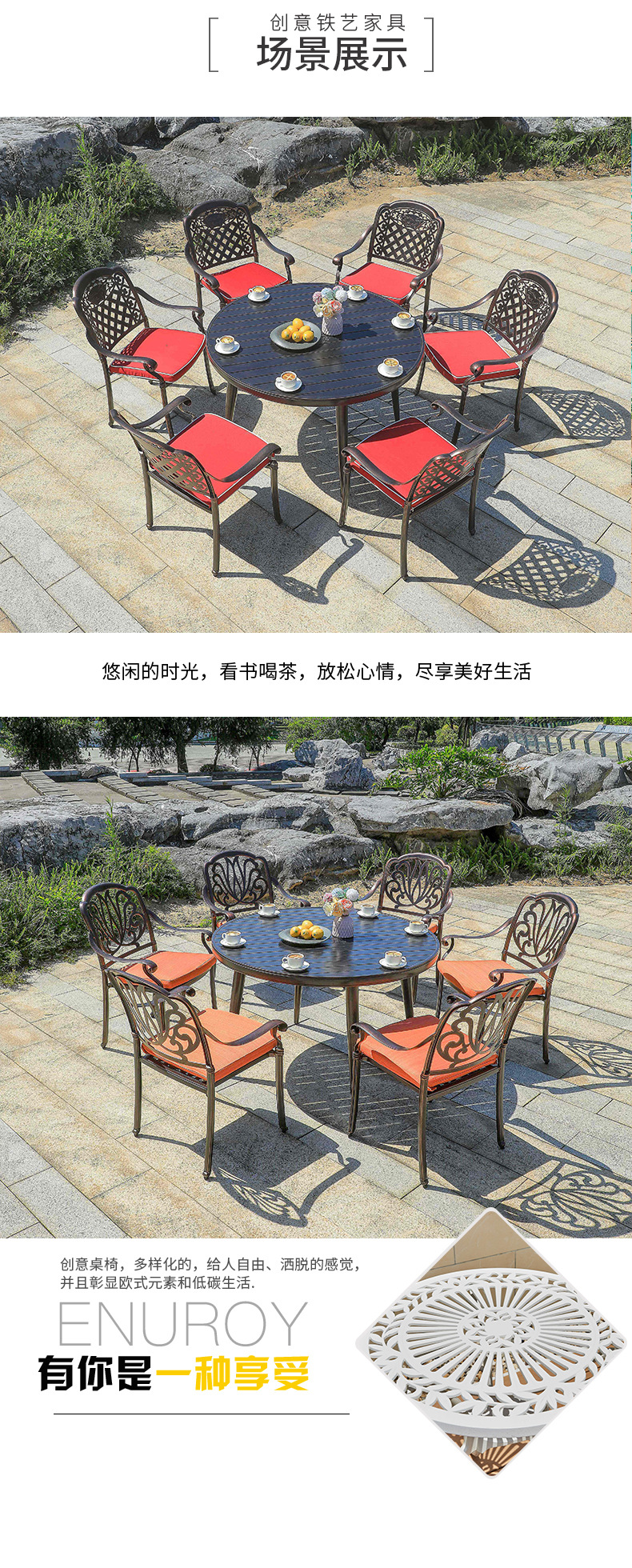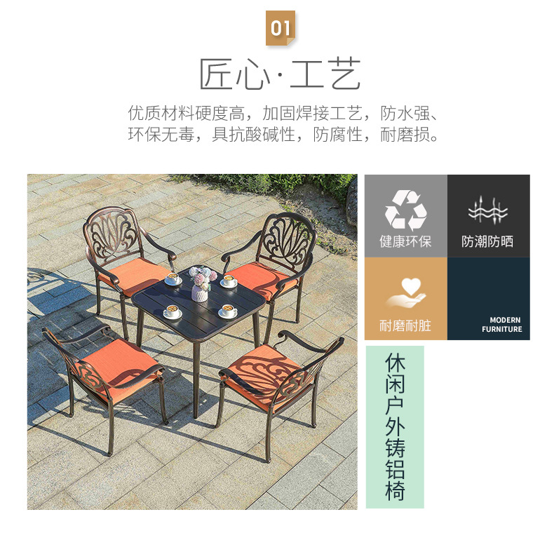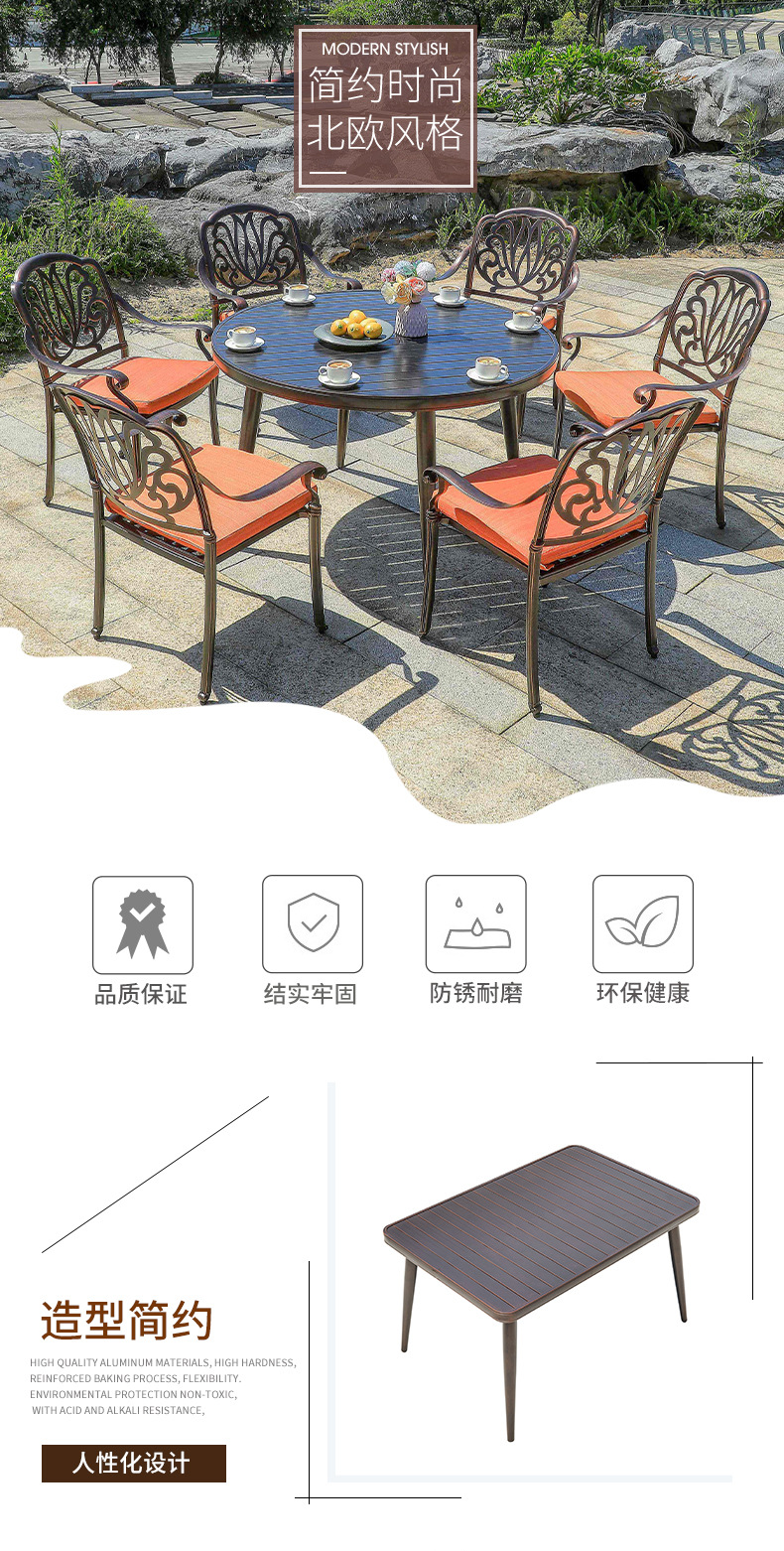Bàn ghế ngoài trời nhôm đúc sân vườn ngoài trời giải trí biệt thự sân vườn sắt rèn sân thượng ban công kết hợp bàn trà được thiết kế để tạo điểm nhấn cho khu vực sân vườn, ban công hoặc không gian ngoài trời.