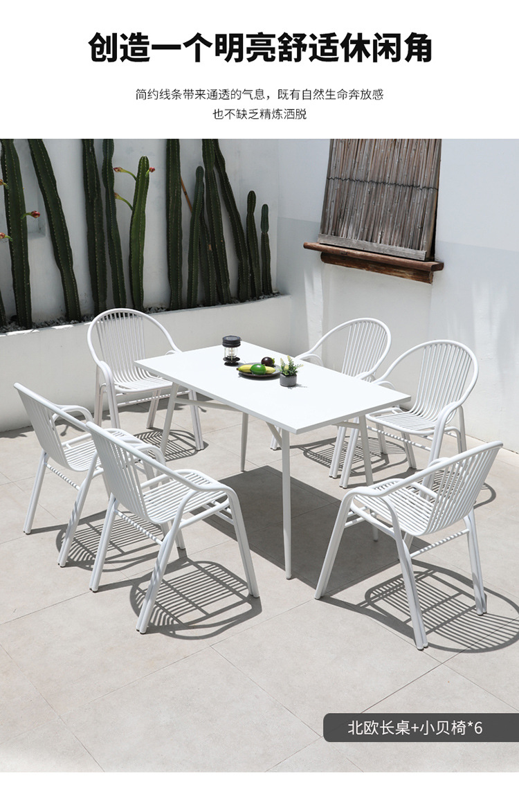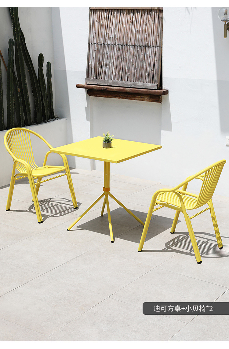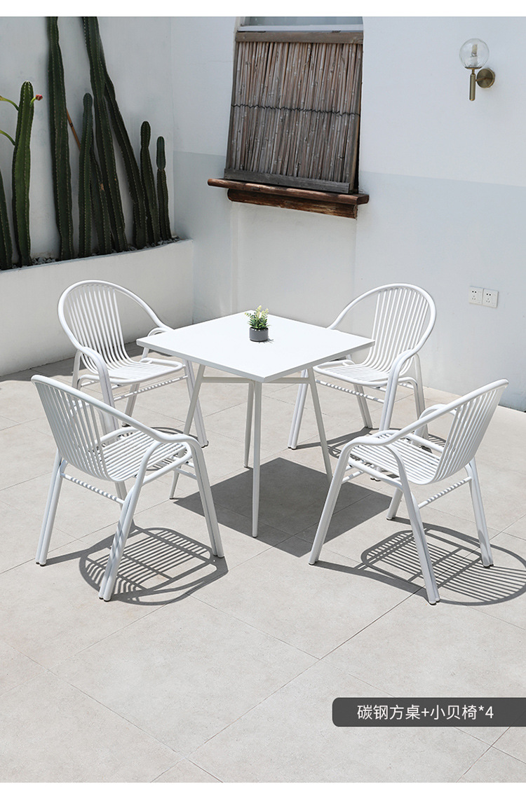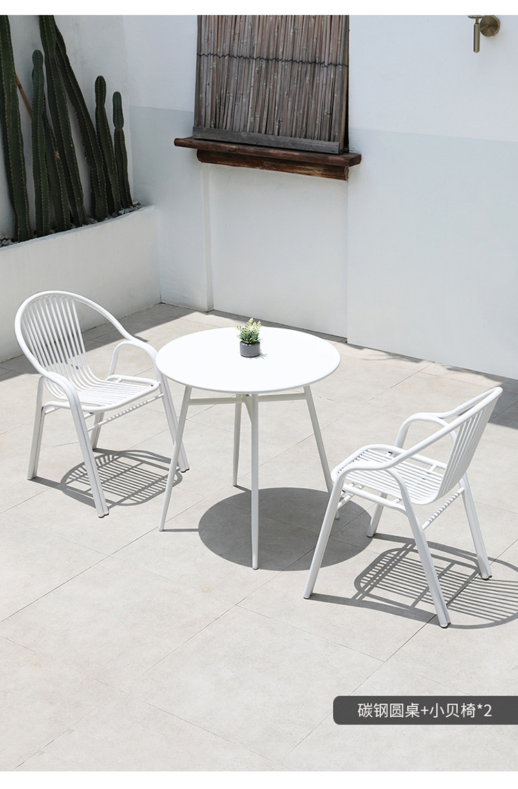Bàn ghế ngoài trời sân ban công giải trí sắt không thấm nước sân thượng ngoài trời quán trà sữa cà phê bàn ghế nhỏ màu trắng