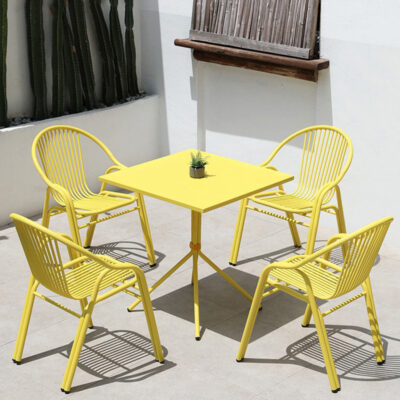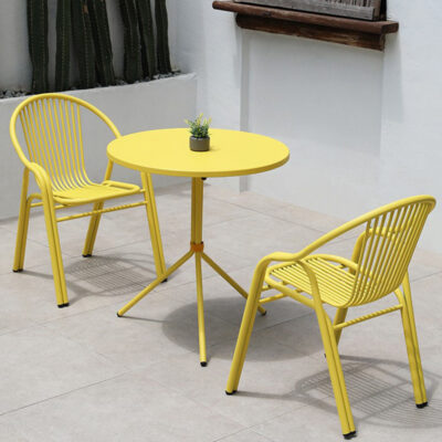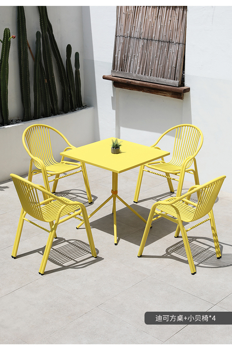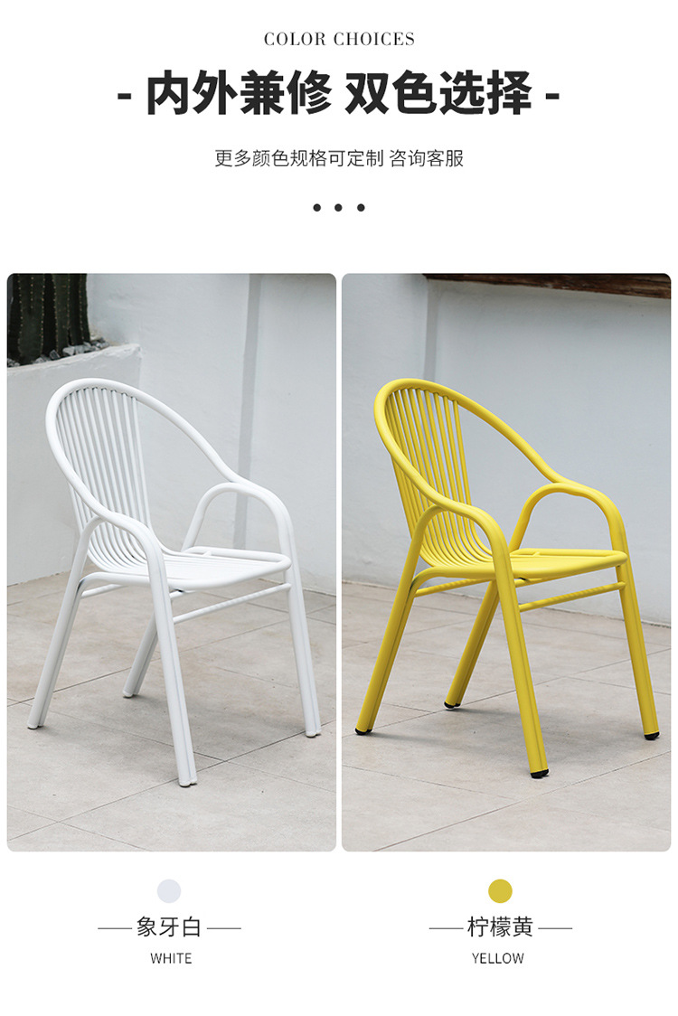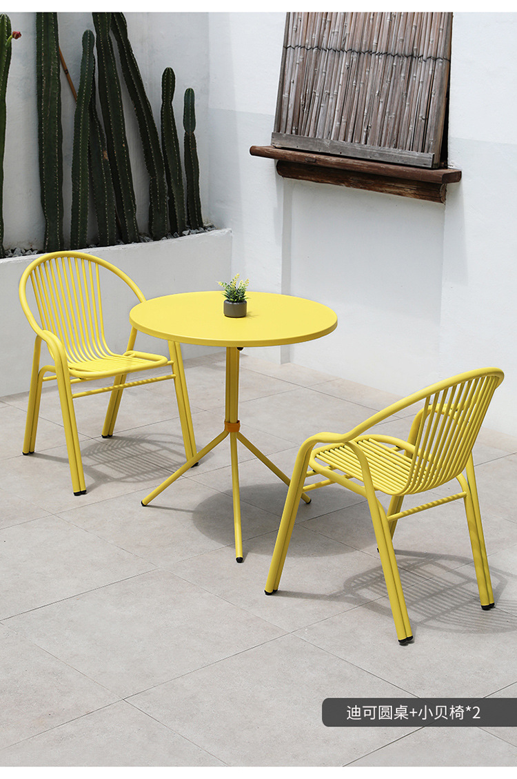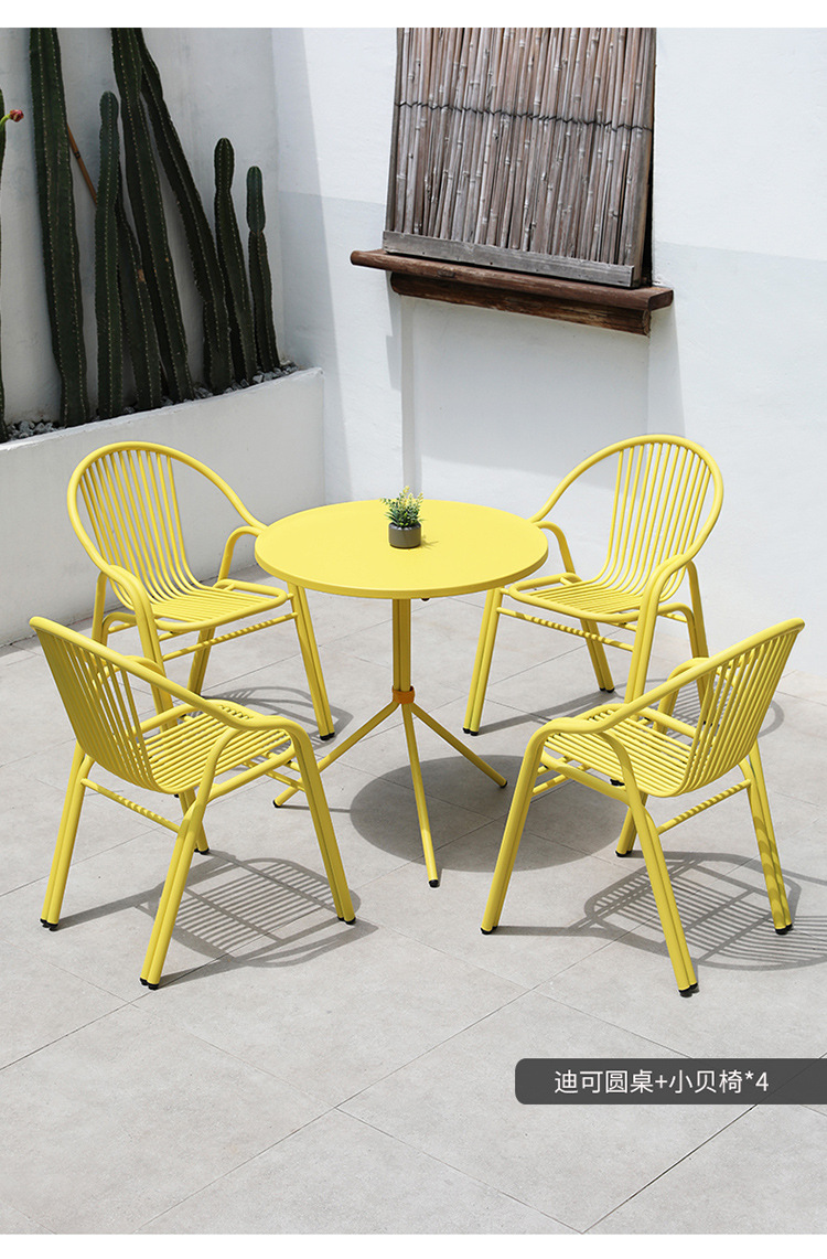 Bàn ghế ngoài trời sân ban công giải trí sắt không thấm nước sân thượng ngoài trời quán trà sữa cà phê bàn ghế nhỏ màu trắng