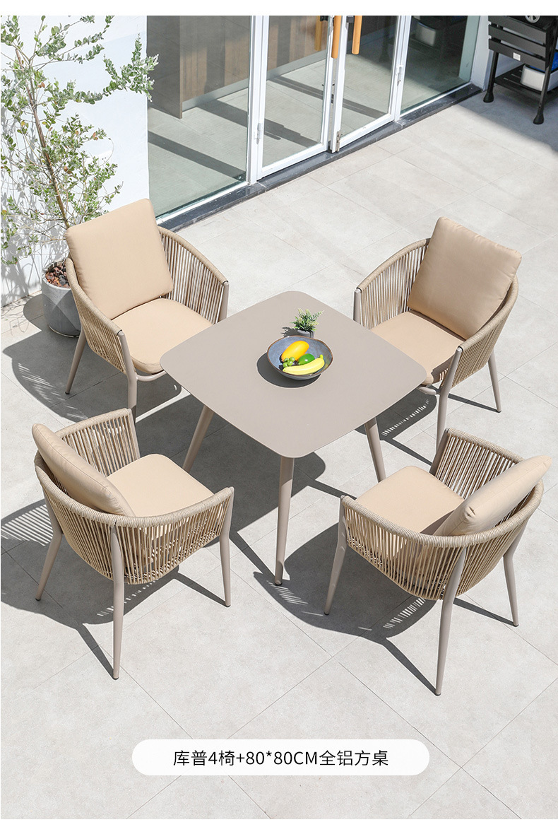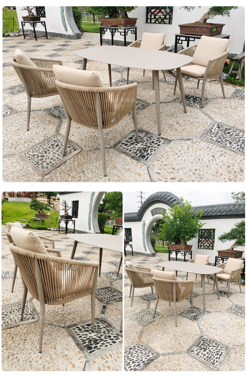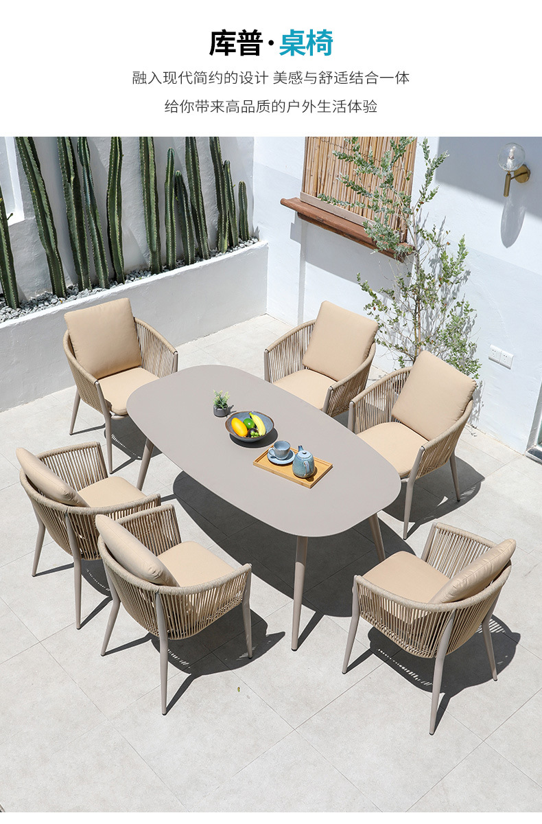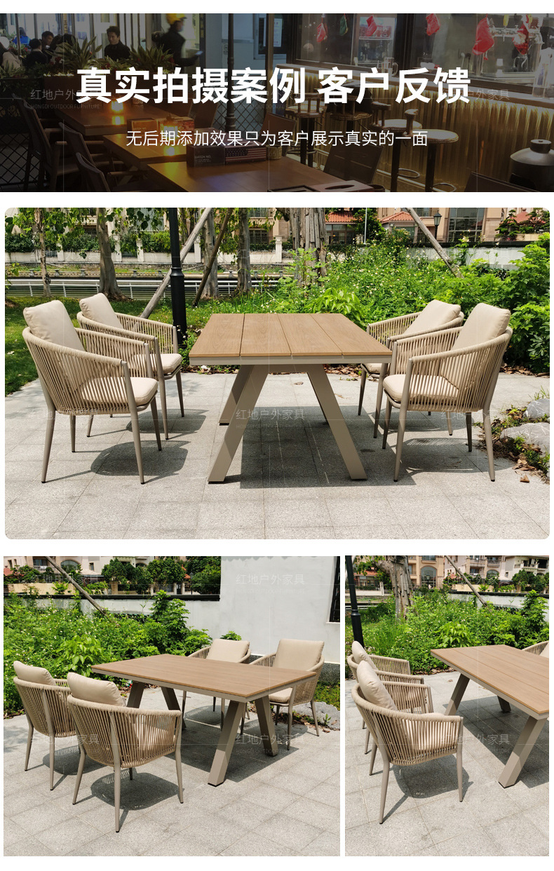 Bàn ghế ngoài trời sân biệt thự ghế mây sân vườn ngoài trời phòng tắm nắng gỗ nhựa bàn dài giải trí dây mây kết hợp bàn ghế được thiết kế để tạo điểm nhấn cho khu vực sân vườn, ban công hoặc không gian ngoài trời.