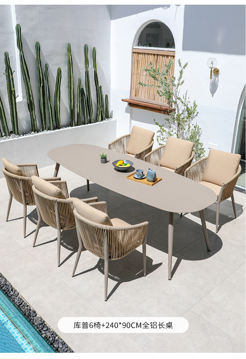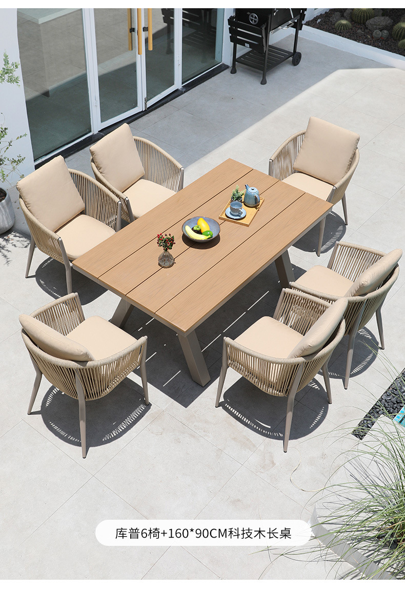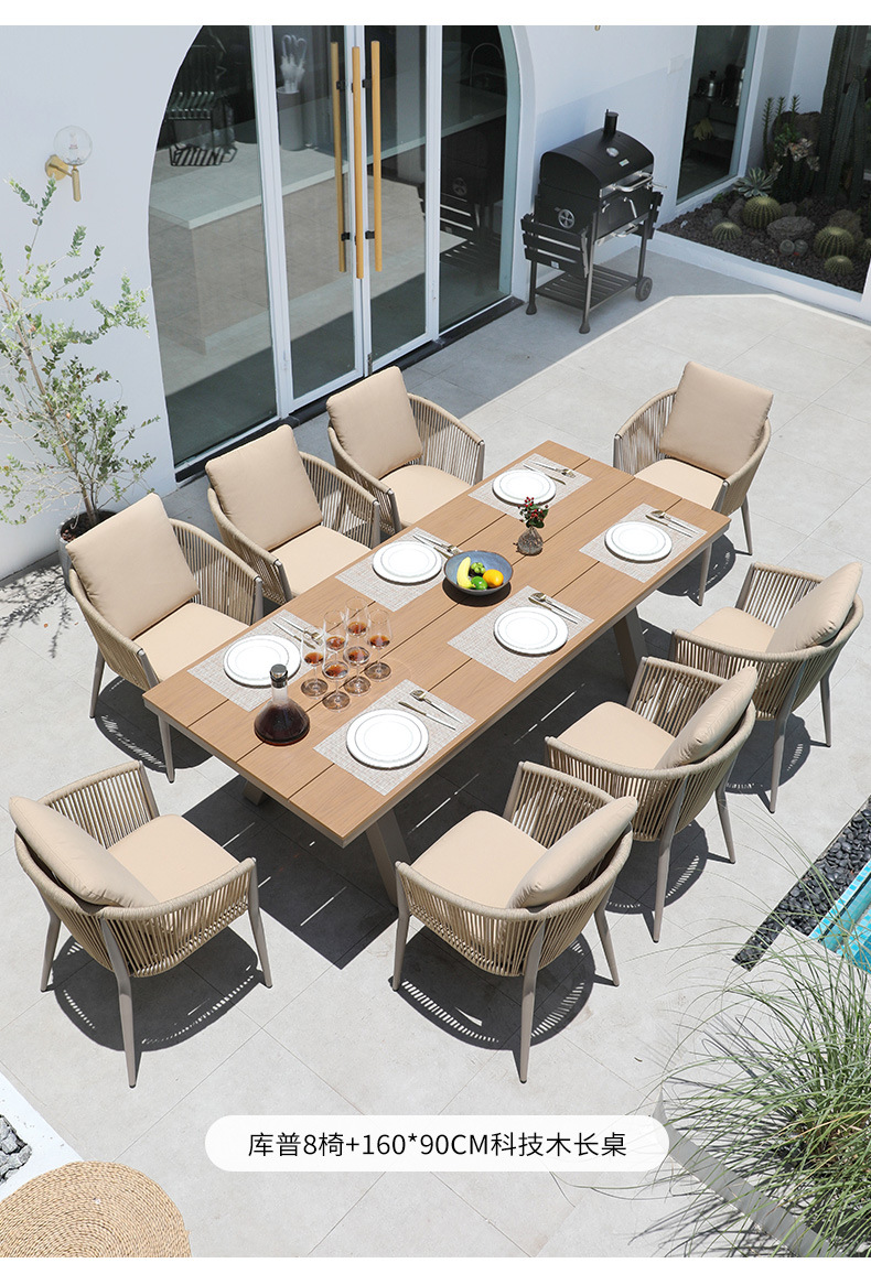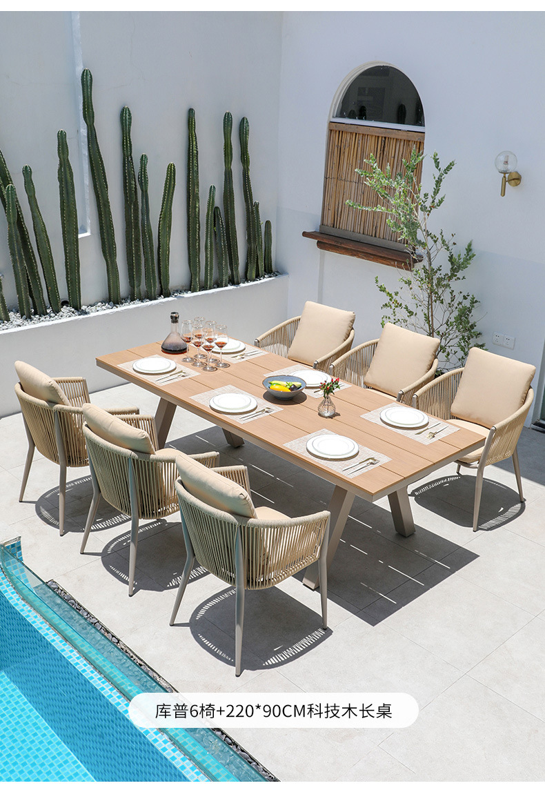 Bàn ghế ngoài trời sân biệt thự ghế mây sân vườn ngoài trời phòng tắm nắng gỗ nhựa bàn dài giải trí dây mây kết hợp bàn ghế