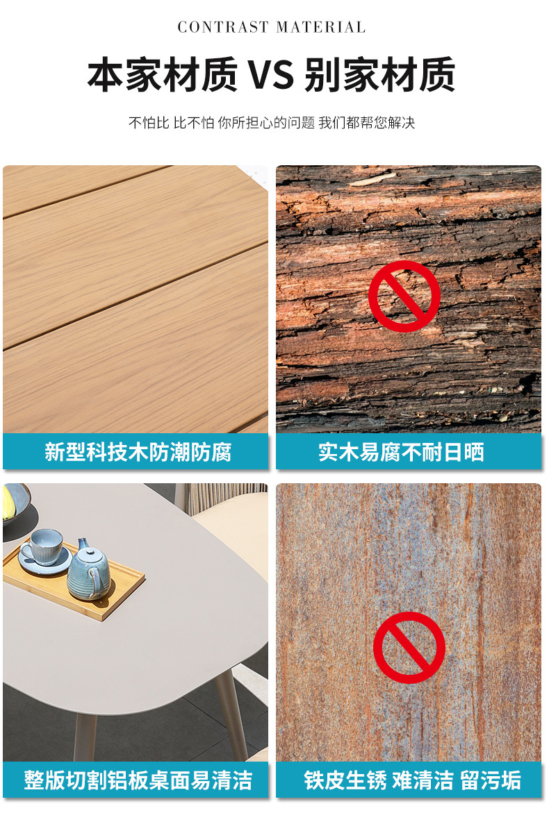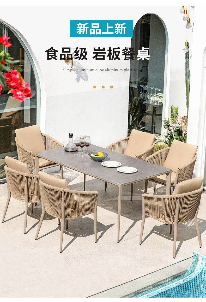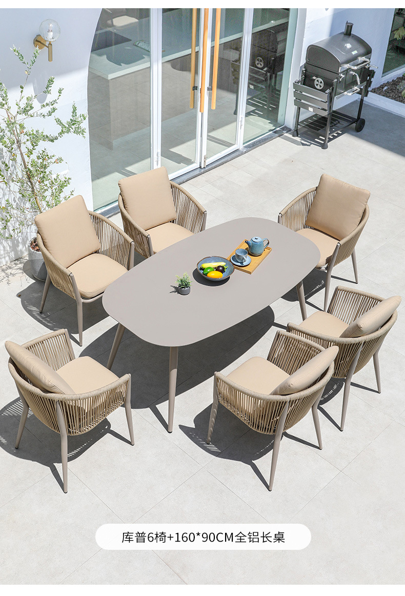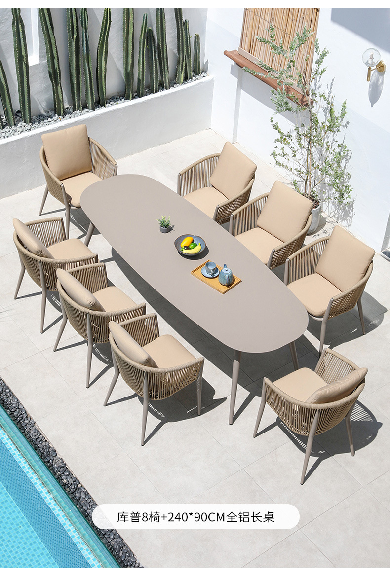 Bàn ghế ngoài trời sân biệt thự ghế mây sân vườn ngoài trời phòng tắm nắng gỗ nhựa bàn dài giải trí dây mây kết hợp bàn ghế