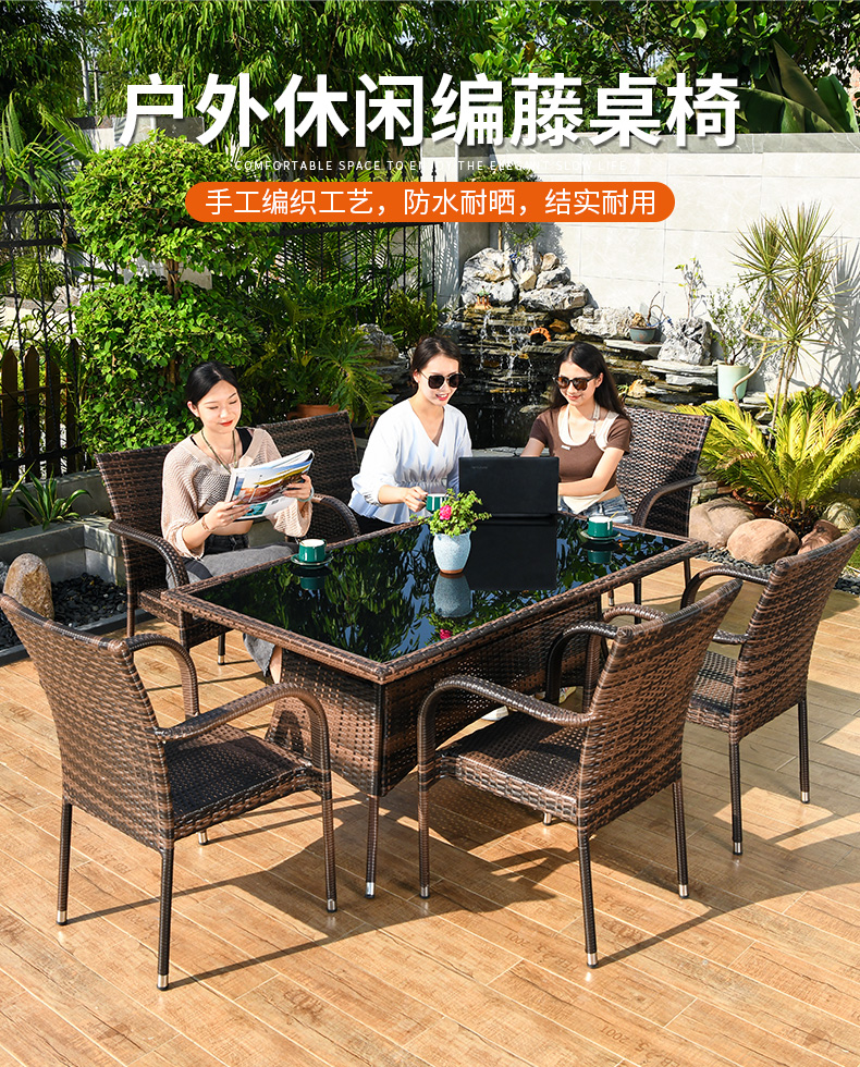 [Đã bao gồm bồi thường mây gãy] Ghế trọn gói, 6 ghế, bàn dài mây vuông góc 150x90cm