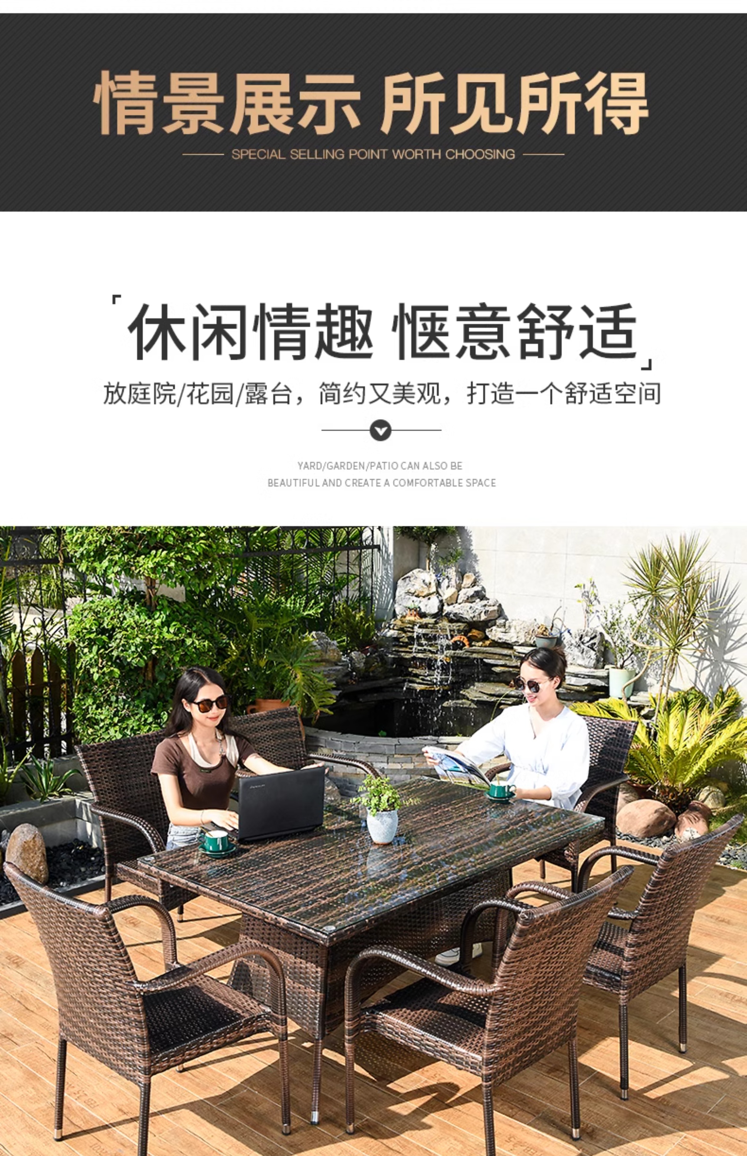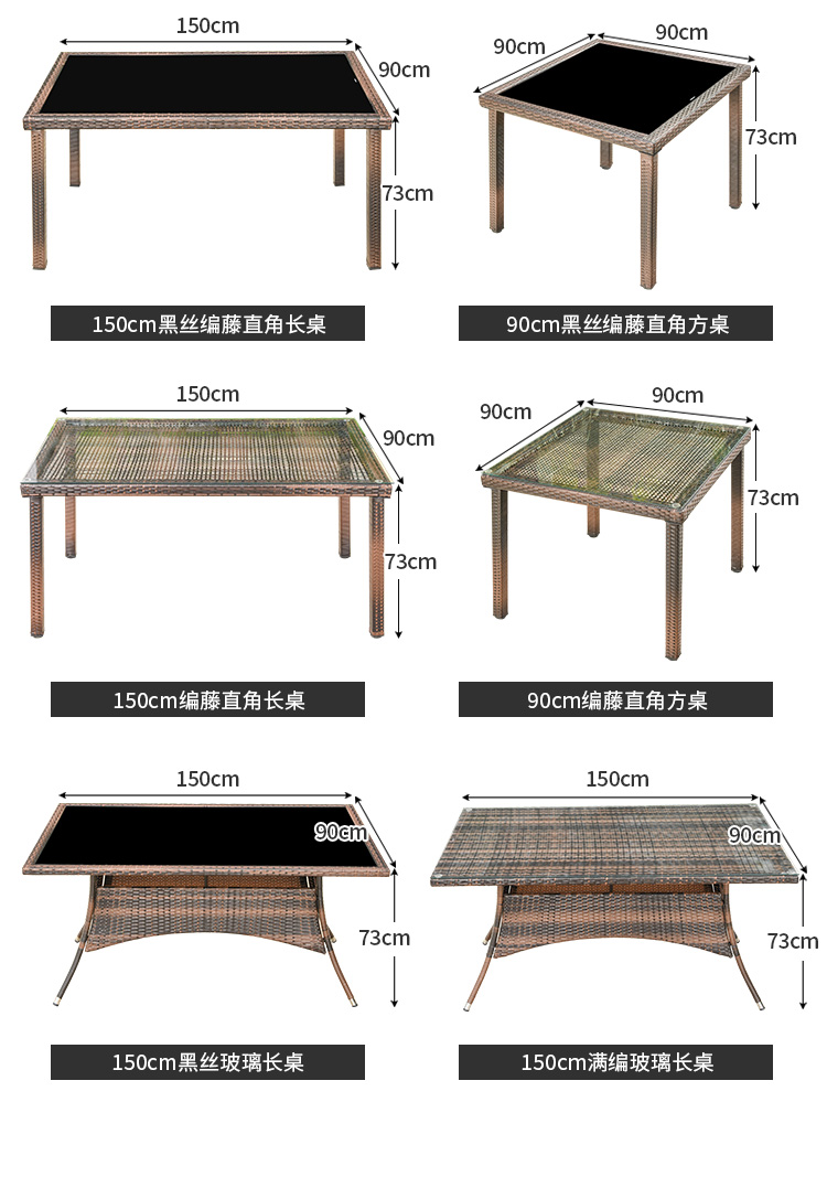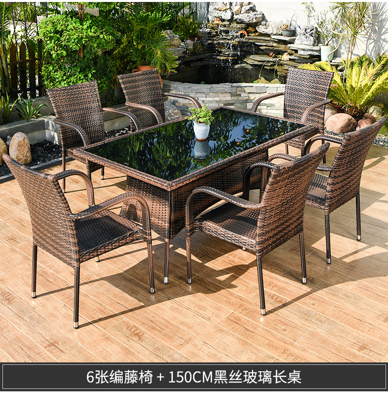 [Đã bao gồm đền bù mây gãy] Ghế trọn gói, 6 ghế, bàn dài góc vuông 150x90cm