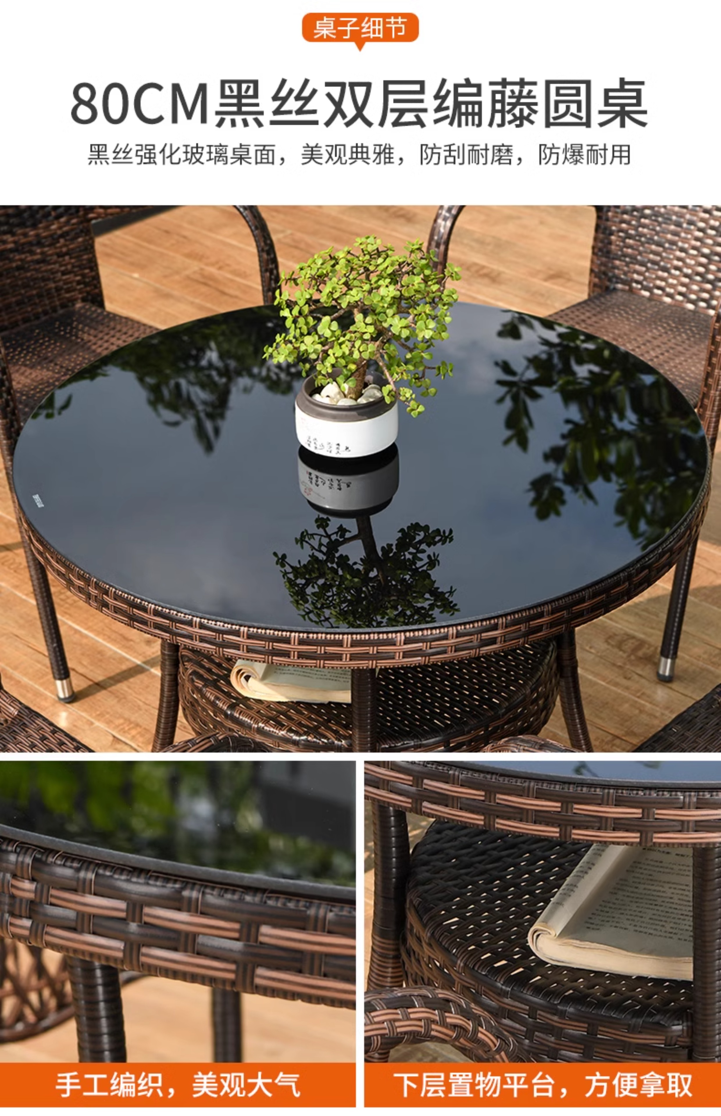 [Bồi thường mây gãy] Nửa bộ 4 ghế, bàn tròn 2 tầng 60cm