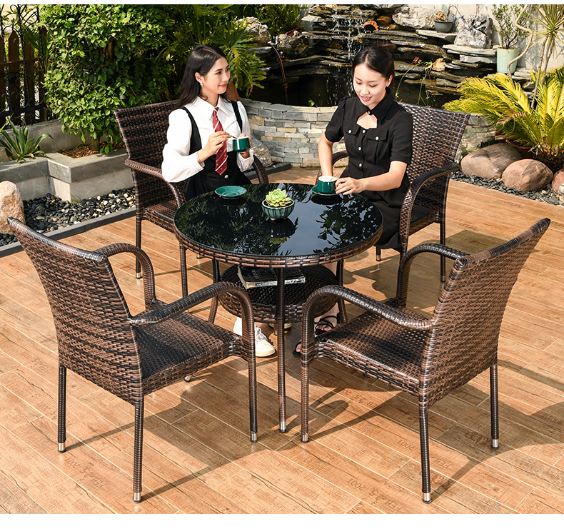 [Bàn ô kết hợp] 4 ghế lưng tròn 80cm mây hai lớp bàn tròn 2,5m ô La Mã