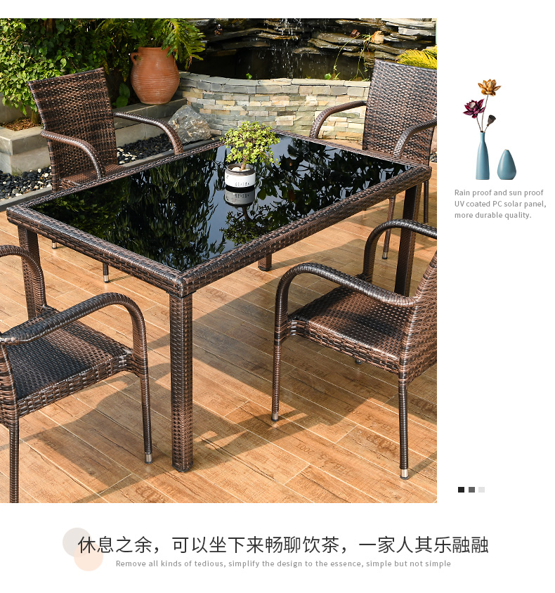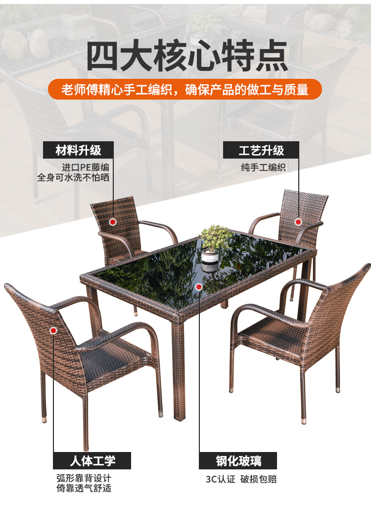 [Bồi thường mây gãy] Ghế trọn gói 4 ghế Bàn dài mây 150x90cm