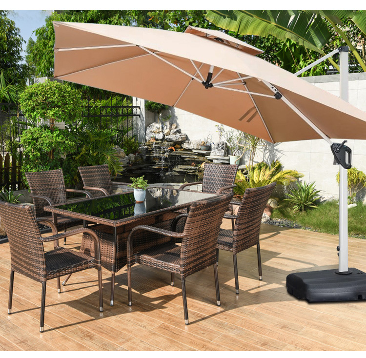 [Bàn ô kết hợp] Nửa bộ 6 ghế, bàn mây dài 150x90cm, ô La Mã chống gió nắng cao 3m