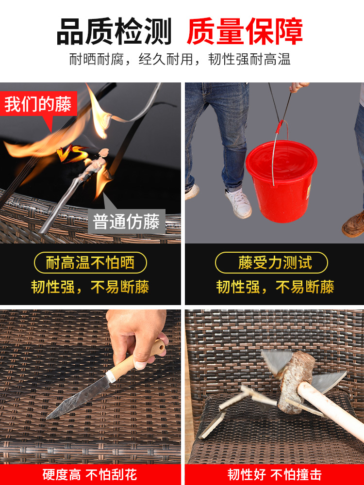 [Bồi thường mây gãy] Ghế trọn gói 4 ghế 150x90cm vuông góc đầy đủ bàn dài mây tre đan