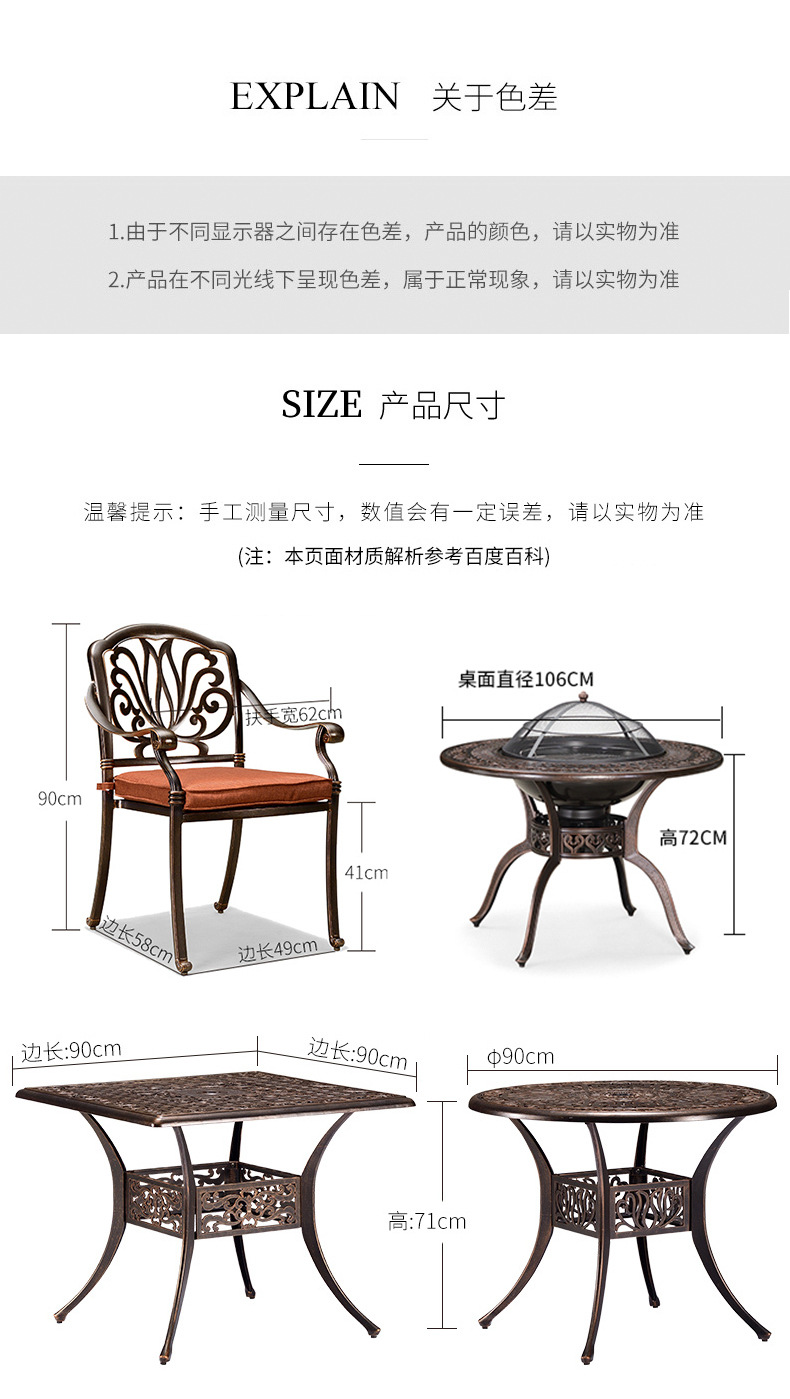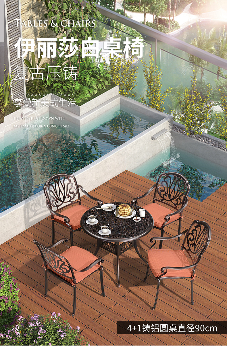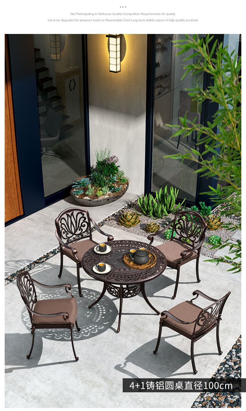 Bàn ghế ngoài trời sân giải trí Bộ bàn ghế sân vườn ngoài trời năm món bàn sắt rèn sân thượng ban công thoáng ghế nhôm đúc được thiết kế để tạo điểm nhấn cho khu vực sân vườn, ban công hoặc không gian ngoài trời.