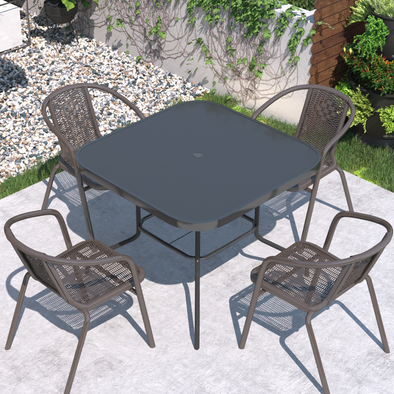 Bàn vuông 4 ghế lắp kính đen 80mm