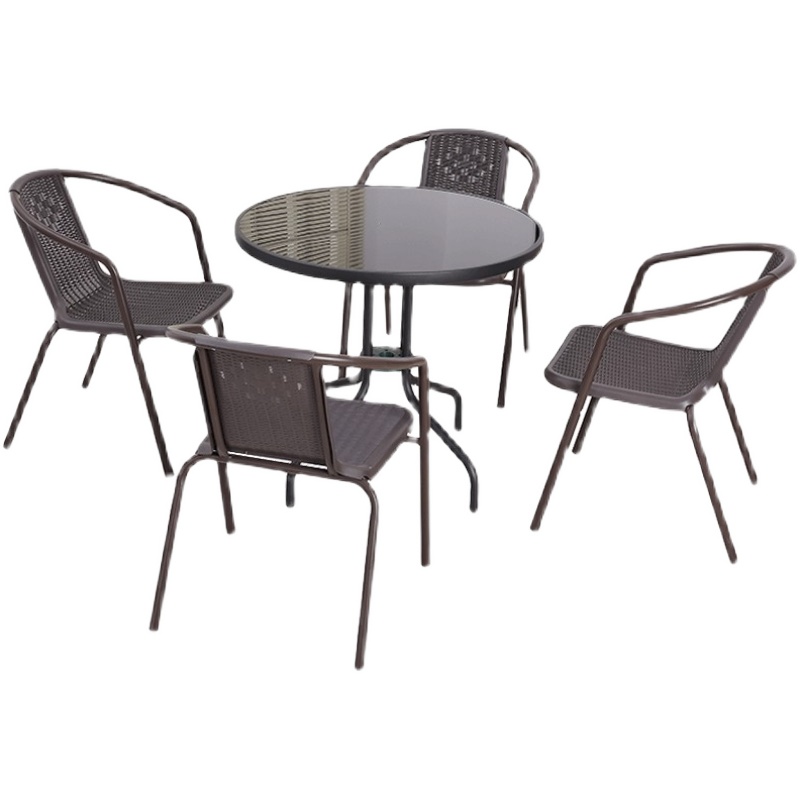 Bàn tròn 4 ghế lắp kính đen 80mm