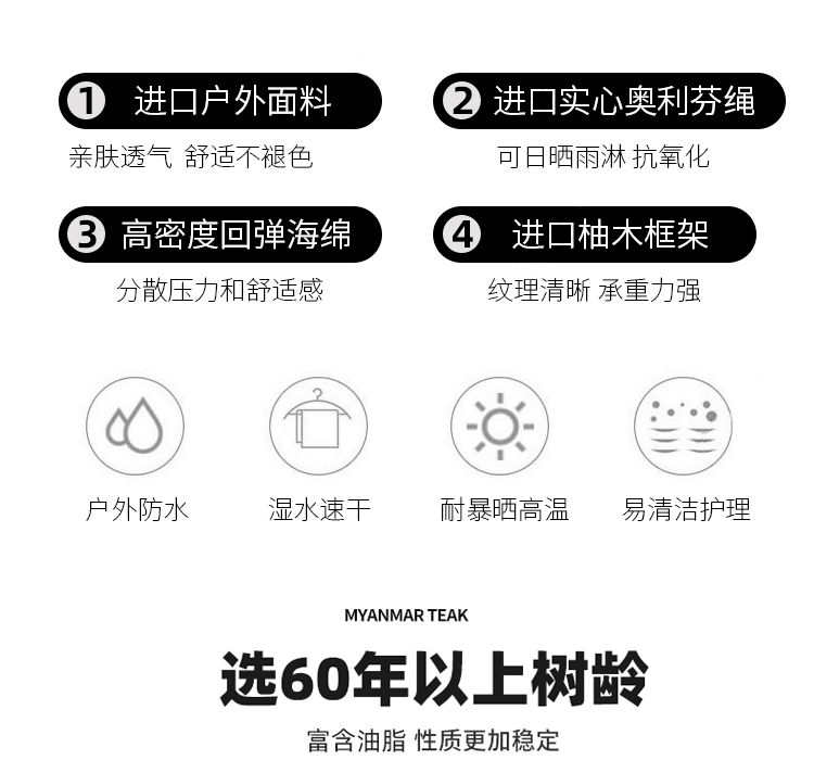Bàn ghế ngoài trời sân gỗ tếch kết hợp biệt thự ngoài trời sân vườn B&B khách sạn ghế mây gỗ ngoài trời chống nắng và chống thấm nước là lựa chọn lý tưởng cho không gian công cộng, sân vườn hoặc khu đô thị. Sản phẩm giúp nâng cao hình ảnh chuyên nghiệp và sạch đẹp cho môi trường sống.