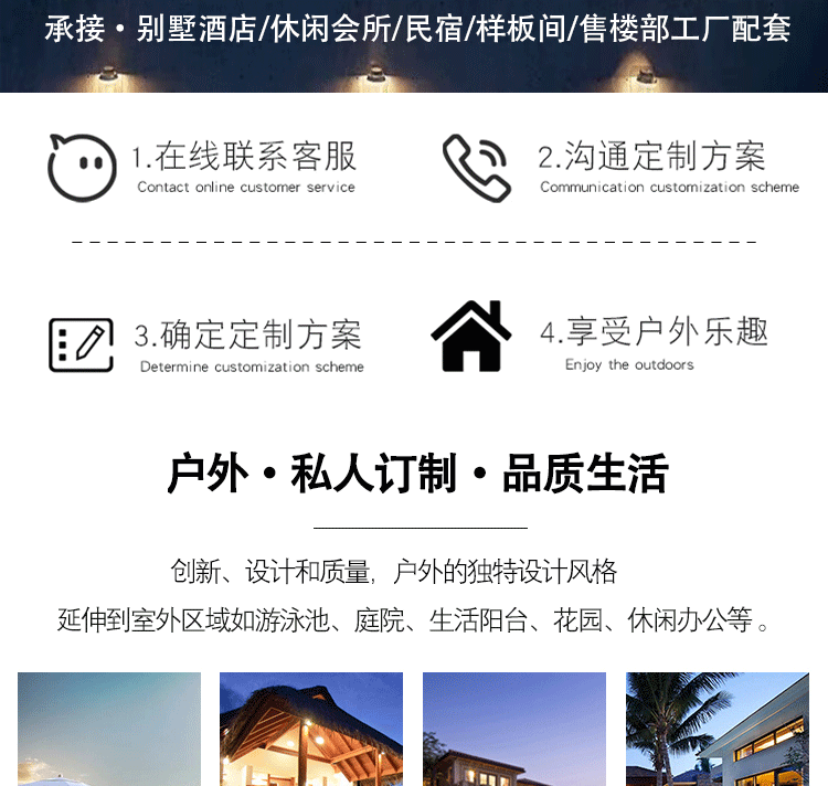 Bàn ghế ngoài trời sân gỗ tếch kết hợp biệt thự ngoài trời sân vườn B&B khách sạn ghế mây gỗ ngoài trời chống nắng và chống thấm nước là lựa chọn lý tưởng cho không gian công cộng, sân vườn hoặc khu đô thị. Sản phẩm giúp nâng cao hình ảnh chuyên nghiệp và sạch đẹp cho môi trường sống.