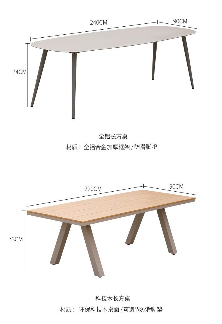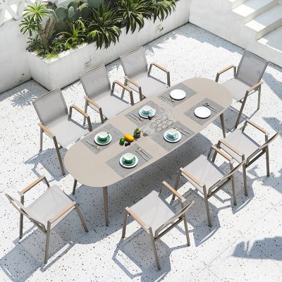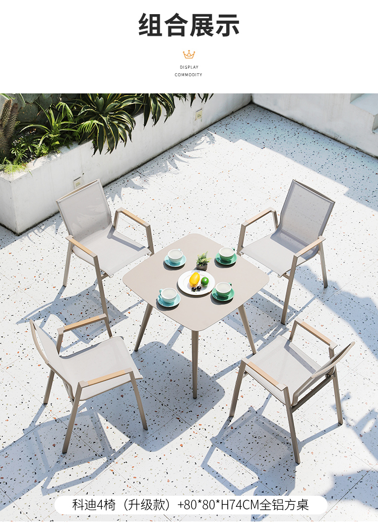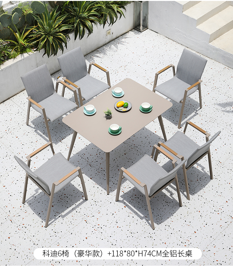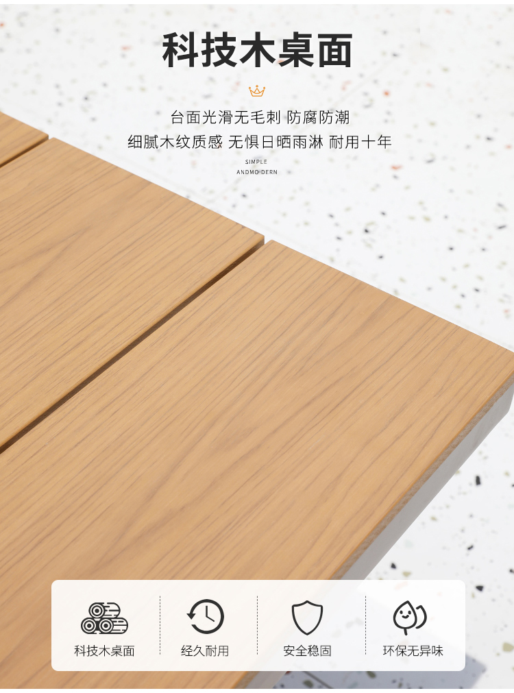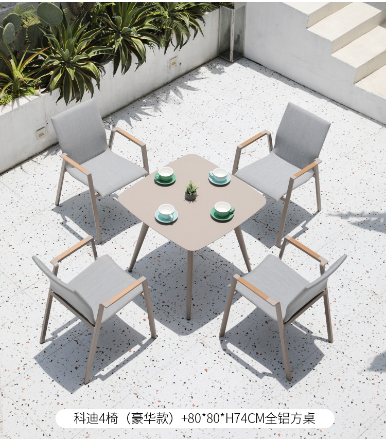 Bàn ghế ngoài trời sân ngoài trời biệt thự sân vườn khách sạn nhôm nhựa vân gỗ chống ăn mòn bàn ghế thư giãn ngoài trời kết hợp bàn ghế được thiết kế để tạo điểm nhấn cho khu vực sân vườn, ban công hoặc không gian ngoài trời.