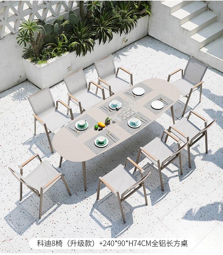 Bàn ghế ngoài trời sân ngoài trời biệt thự sân vườn khách sạn nhôm nhựa vân gỗ chống ăn mòn bàn ghế thư giãn ngoài trời kết hợp bàn ghế là lựa chọn lý tưởng cho không gian ngoài trời hiện đại. Liên hệ ngay để được hỗ trợ nhập khẩu và tư vấn chi tiết.