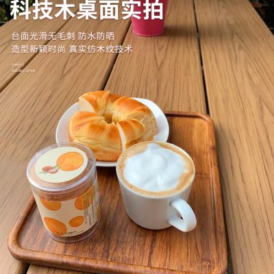 Bàn ghế ngoài trời sân ngoài trời biệt thự sân vườn khách sạn nhôm nhựa vân gỗ chống ăn mòn bàn ghế thư giãn ngoài trời kết hợp bàn ghế