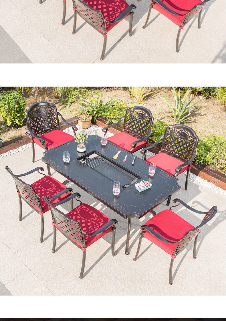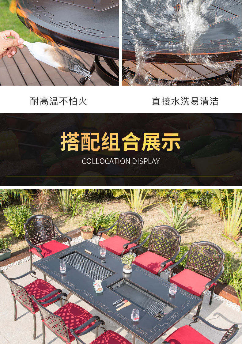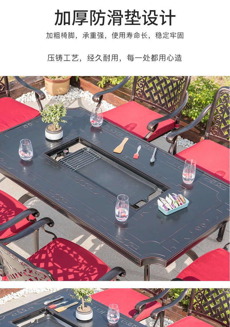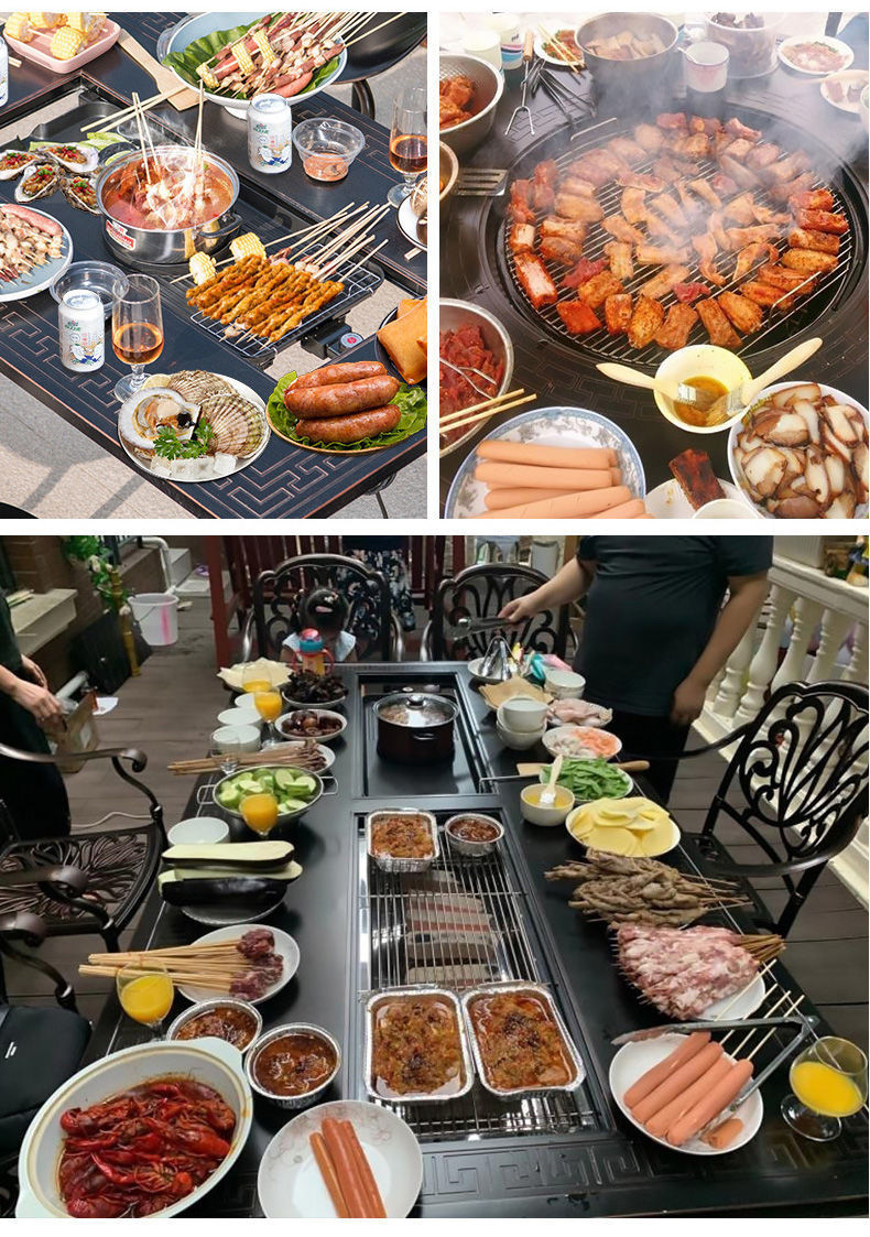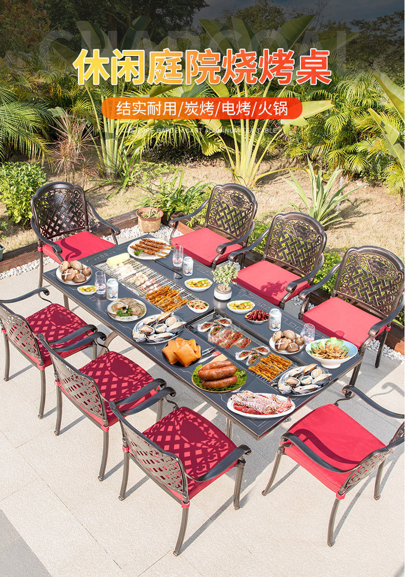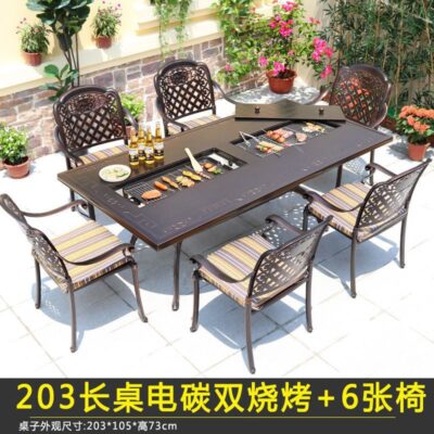Bàn ghế ngoài trời sân vườn ban công giải trí bàn ghế nướng điện bằng nhôm đúc sân vườn ngoài trời bàn nướng ngoài trời bàn nướng bàn dài