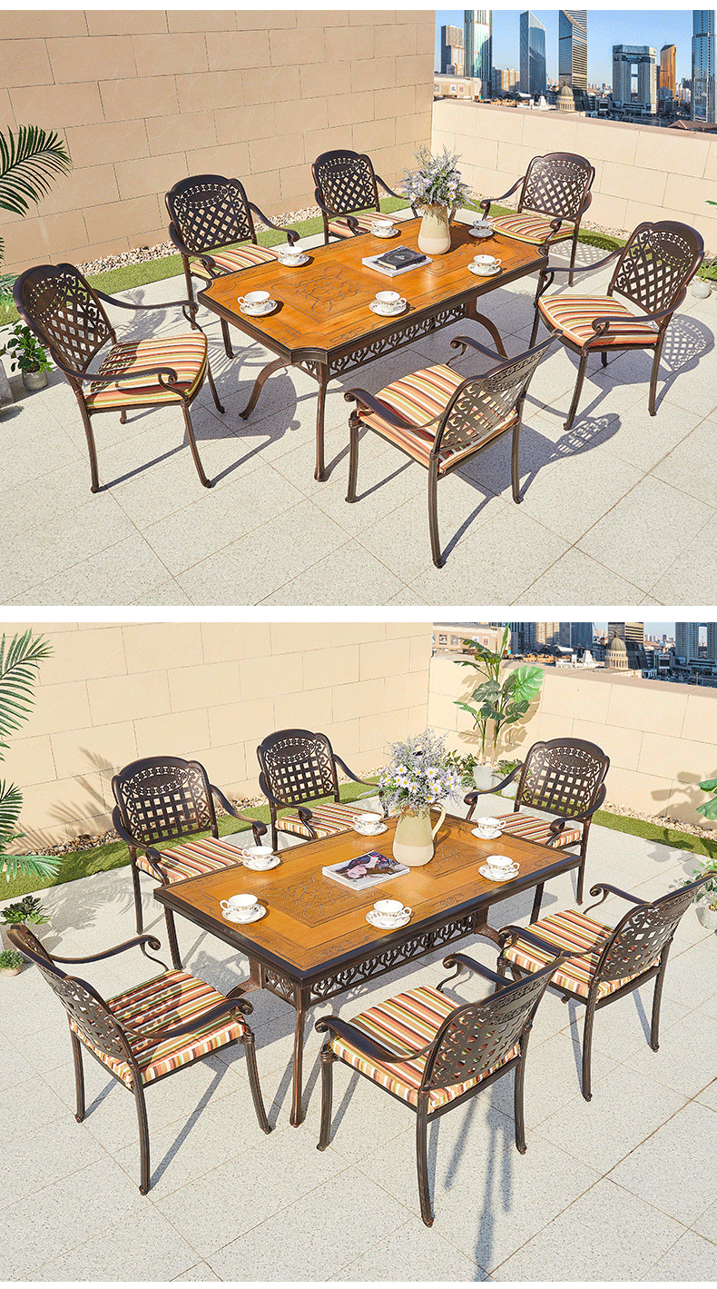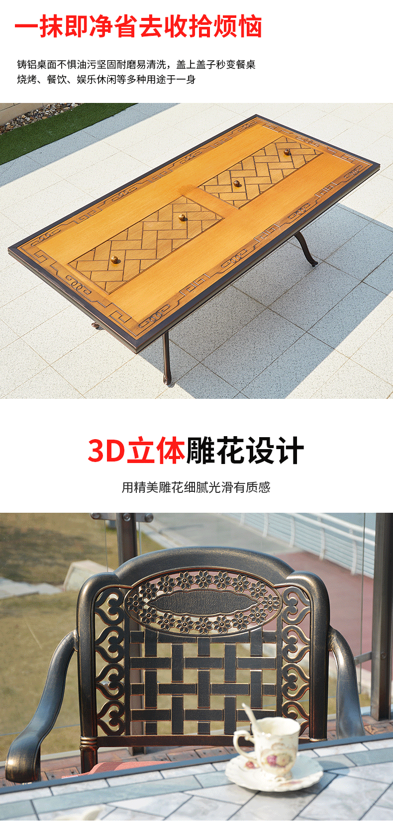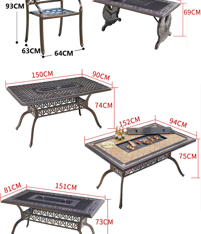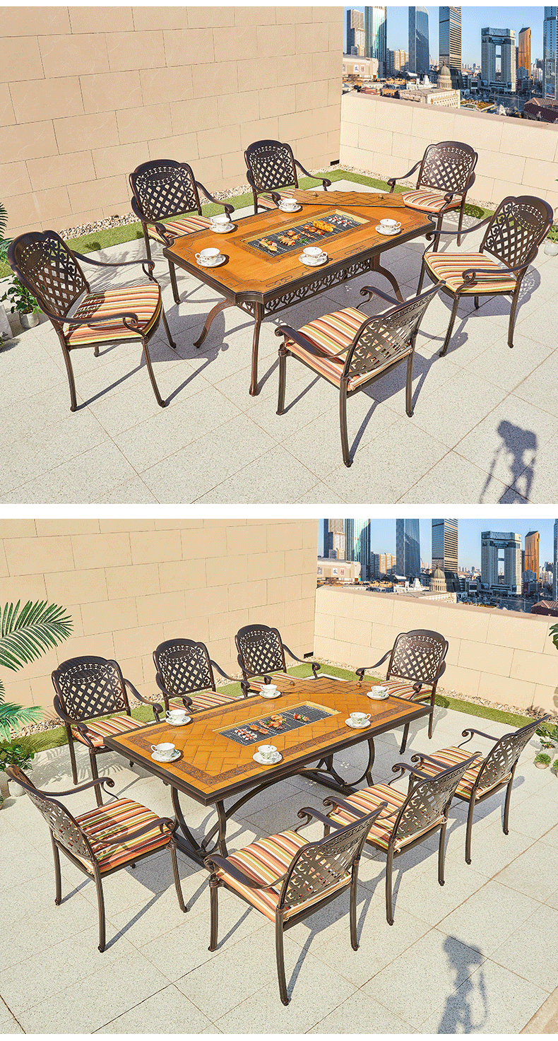 Bàn ghế ngoài trời sân vườn bếp nướng than hoa bếp nướng điện kết hợp bàn ghế ăn ngoài trời chống mưa nắng bàn ghế ăn nhôm đúc được thiết kế để tạo điểm nhấn cho khu vực sân vườn, ban công hoặc không gian ngoài trời.
