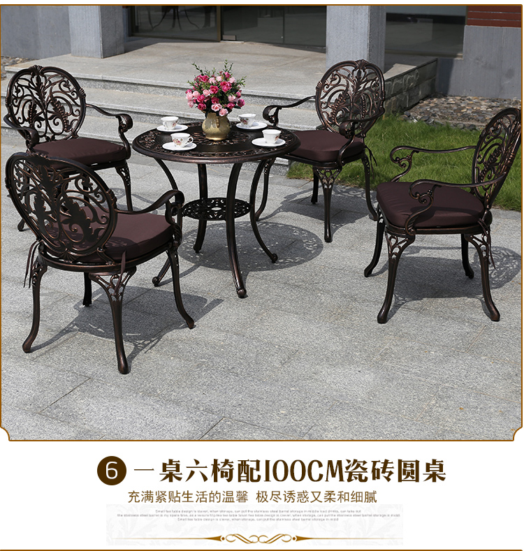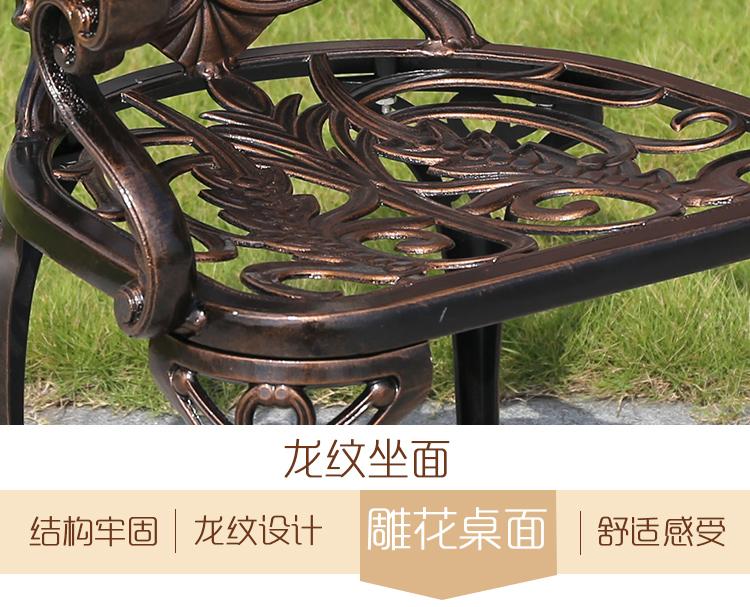 Bàn ghế ngoài trời sân vườn biệt thự, bàn ghế nhôm đúc phong cách Châu Âu. 1 00% các sản phẩm được nhập khẩu. Với mẫu mã đa dạng được thiết kế sang trọng,tinh tế từng chi tiết bền đẹp với mọi thời tiết. Luôn mang đến những sự lựa chọn thích hợp nhất về kiểu dáng. Tạo sự thân thiện và thoải mái cho cả gia đình khi ngồi bên nhau! GIÁ CẢ TỐT NHẤT THỊ TRƯỜNG! Liên hệ 0346.246.292 Thông số sản phẩm Thương hiệu: Rattan Jade Pavilion Mẫu: Bàn ghế nhôm đúc hoa văn HX-Dragon Chất liệu chính: Nhôm Các tính năng bổ sung: Cấu trúc đồ nội thất có thể di chuyển: cấu trúc khung Xuất xứ: Tỉnh Quảng Đông Khối lượng đóng gói: 1 Tổng trọng lượng: 100
