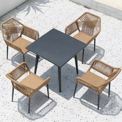 Bàn ghế ngoài trời sân vườn ngoài trời giải trí ghế mây chống nắng chống thấm Bàn gỗ nhựa sân vườn bàn ghế mây hợp kim nhôm ngoài trời