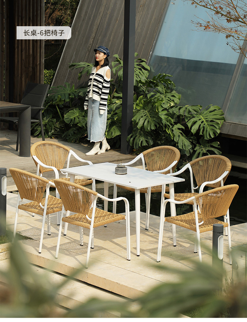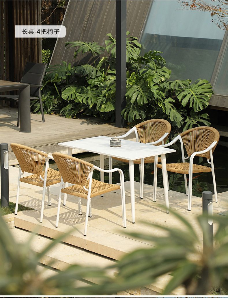 Bàn ghế ngoài trời sân vườn ngoài trời giải trí ghế mây thương mại bàn ghế đơn giản có ô kết hợp bàn ghế ngoài trời