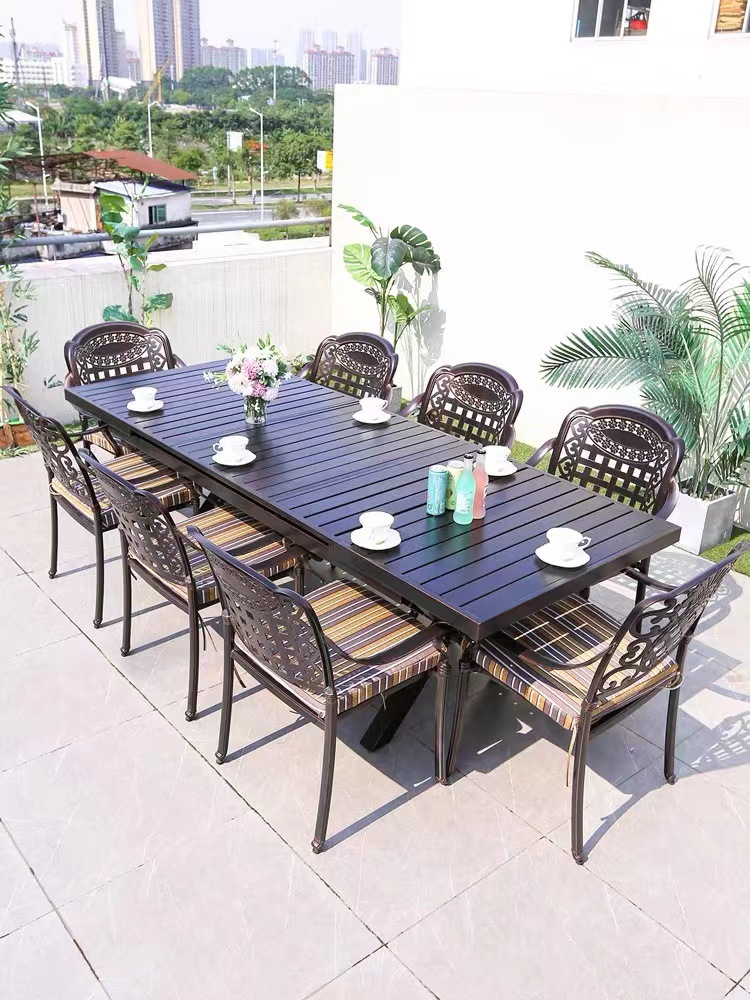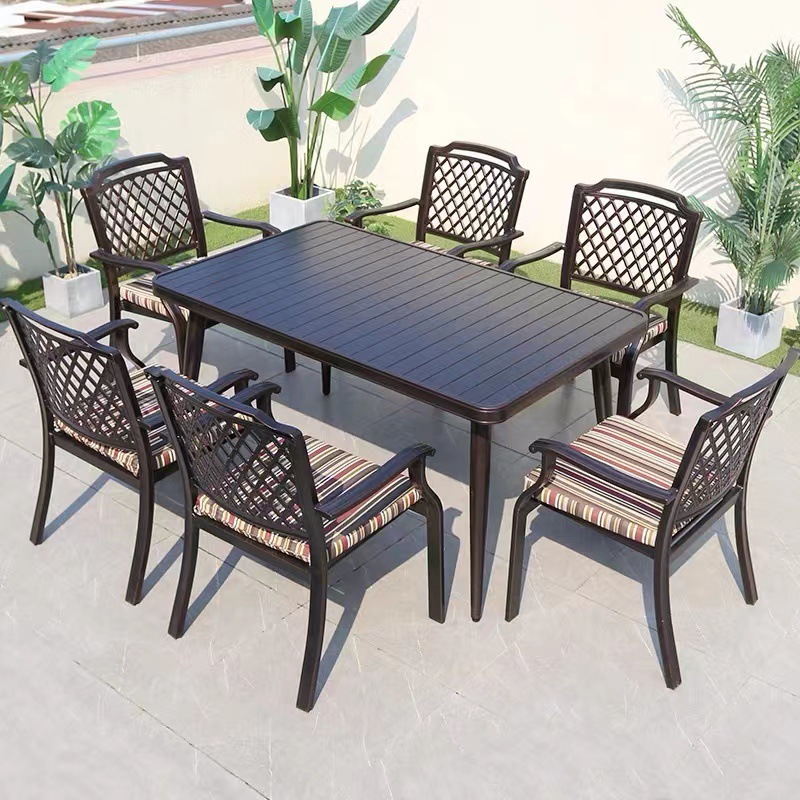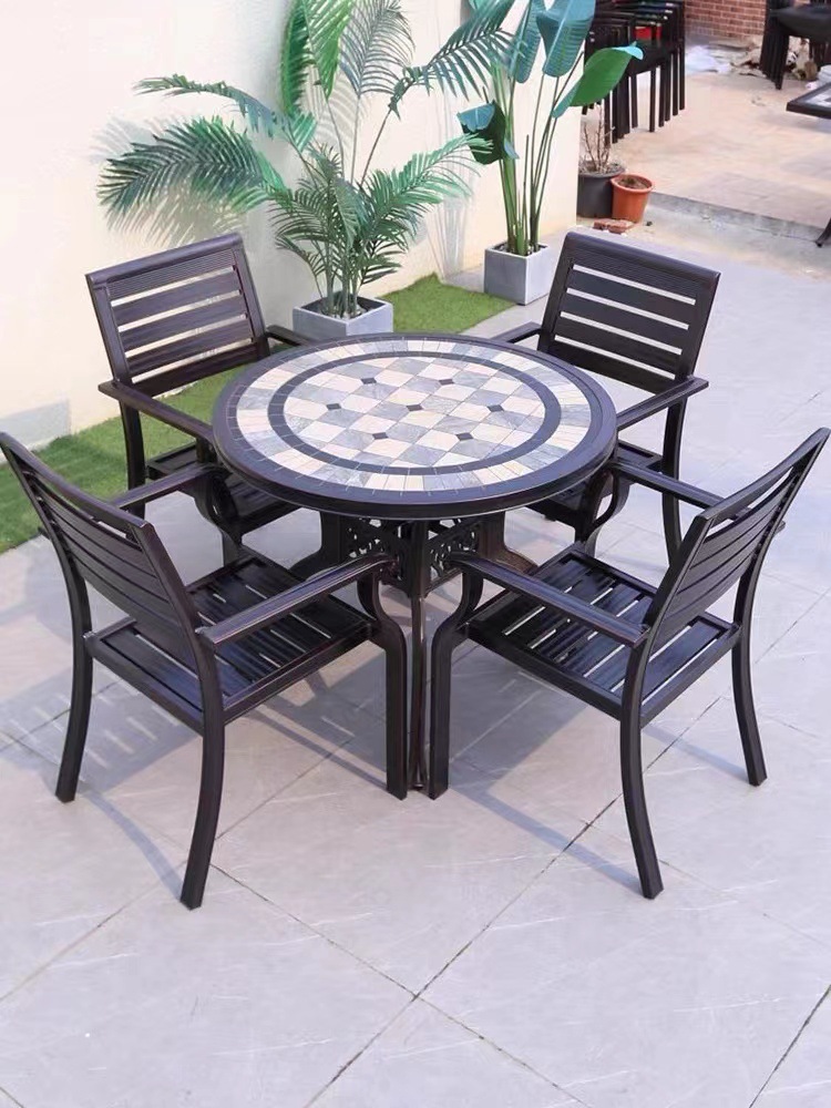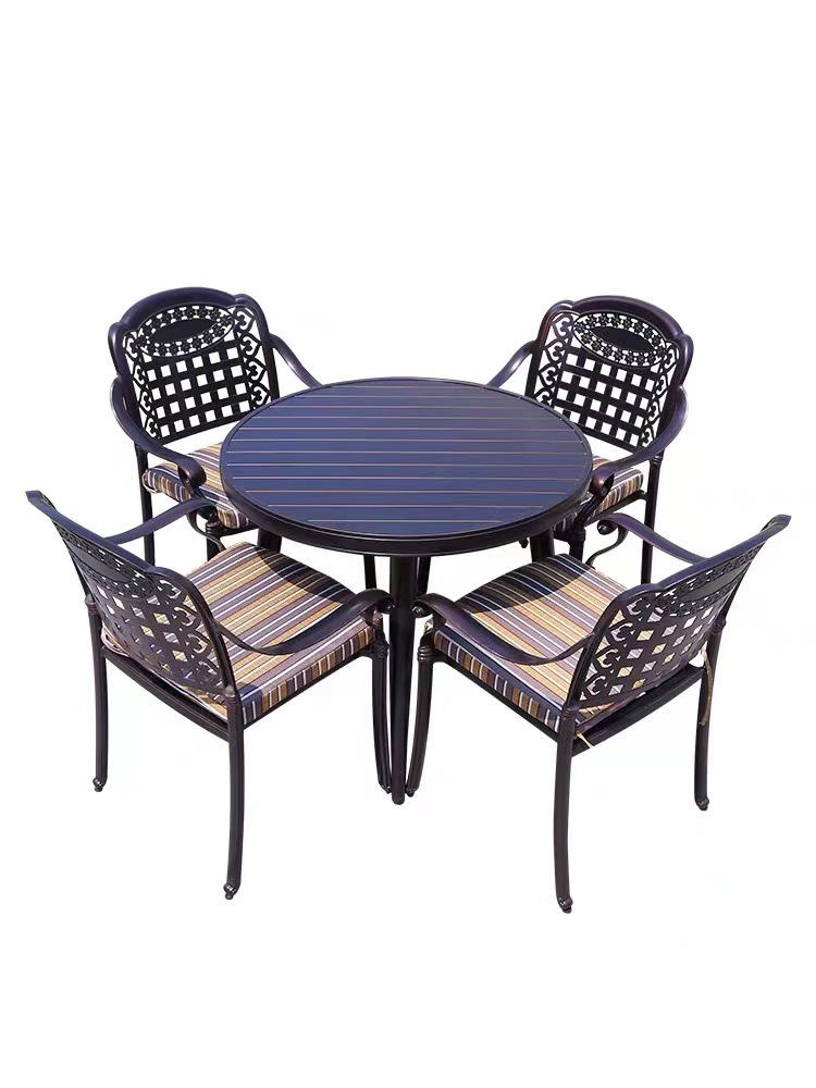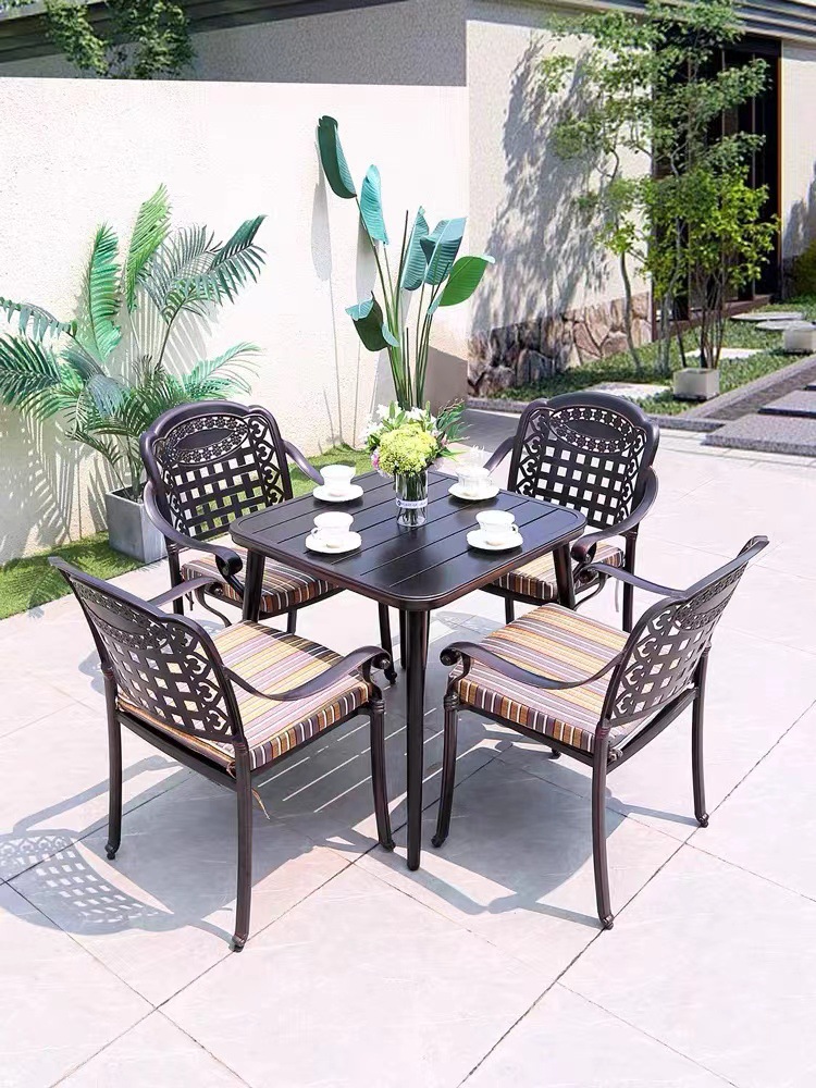 Bàn ghế ngoài trời sân vườn ngoài trời toàn bộ hợp kim nhôm bàn ghế ngoài trời biệt thự sân vườn giải trí bàn ghế nhôm đúc chống mưa nắng