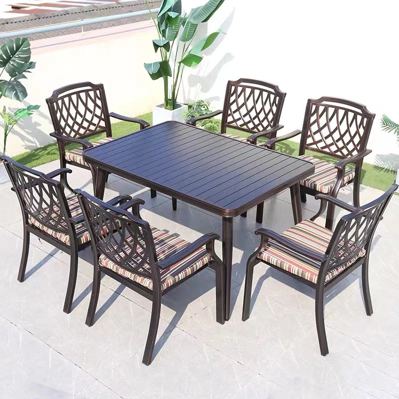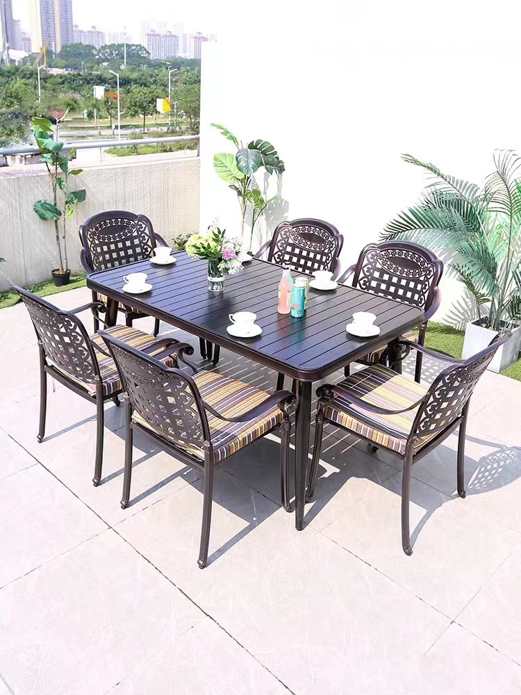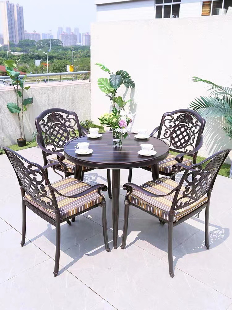 Bàn ghế ngoài trời sân vườn ngoài trời toàn bộ hợp kim nhôm bàn ghế ngoài trời biệt thự sân vườn giải trí bàn ghế nhôm đúc chống mưa nắng
